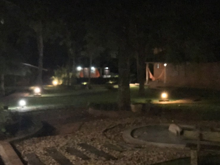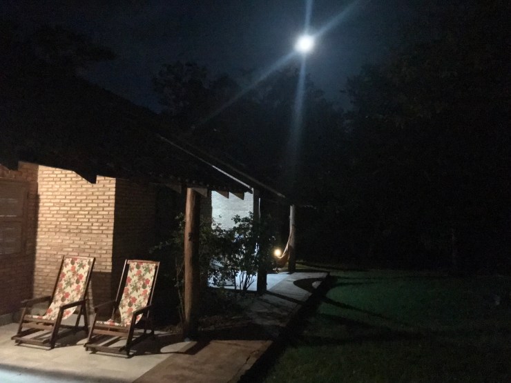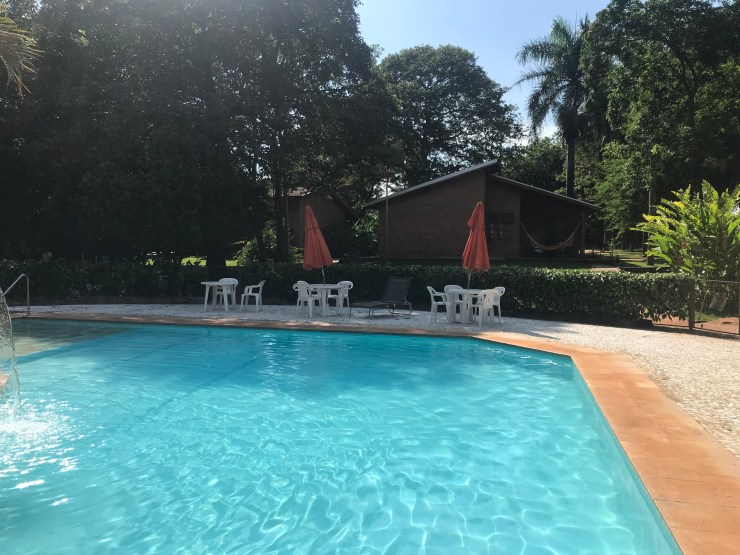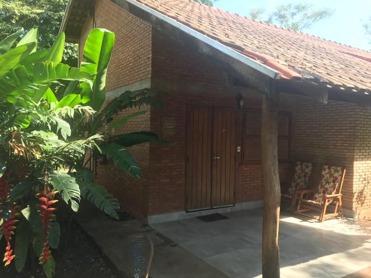 Em Bonito, ficamos na Pousada Olho D’água, muito gostosa, com chalés, uma estrutura muito legal.