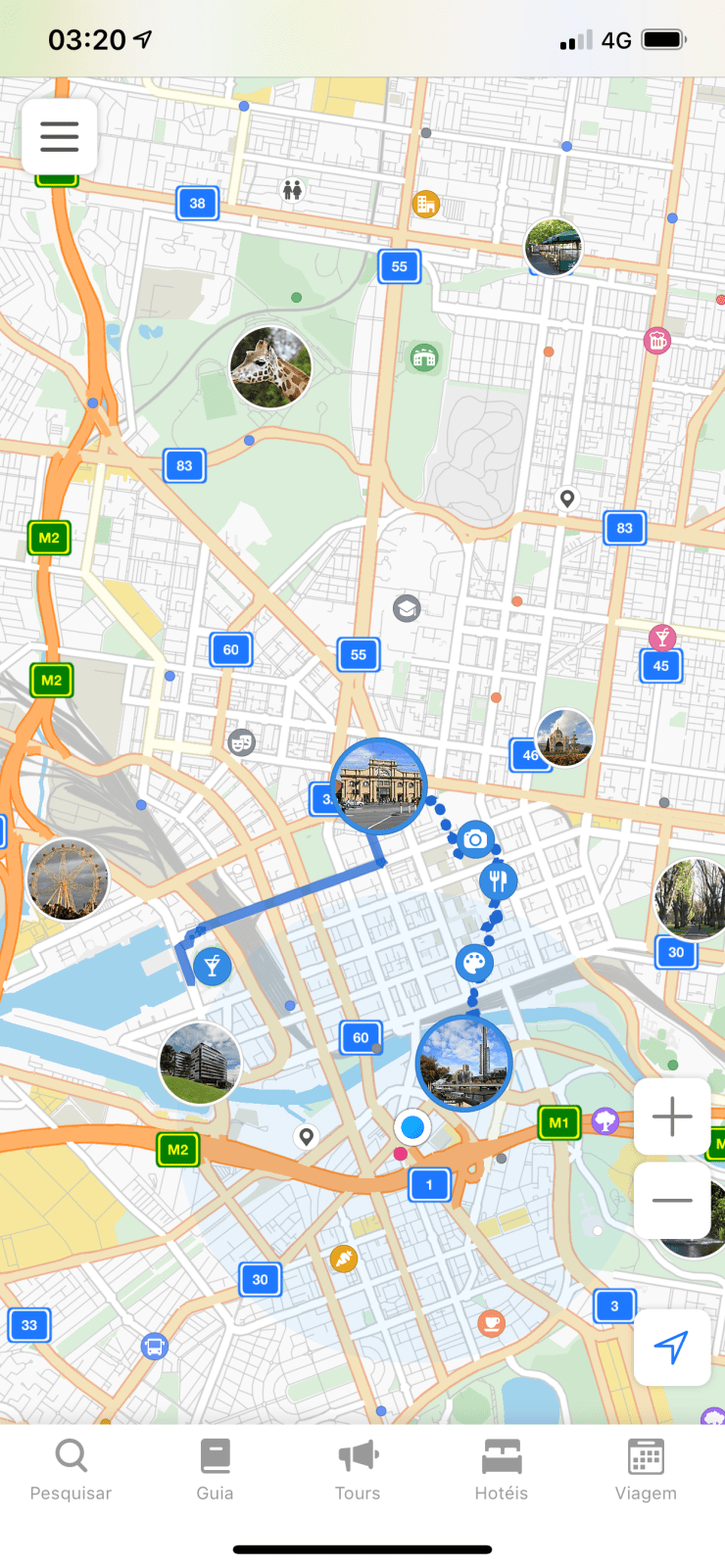 Começamos a utilizar o app Sygic Travel, excelente para programação do seu dia, nas diversas atrações da cidade, o aplicativo monta o roteiro com base nos pontos turísticos e atrações que vc deseja ir.