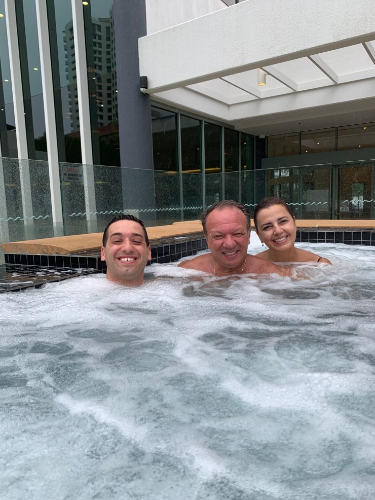 Fomos ao Shopping e ao Outlet, andamos pela cidade, fomos para a piscina e para o ofurô.