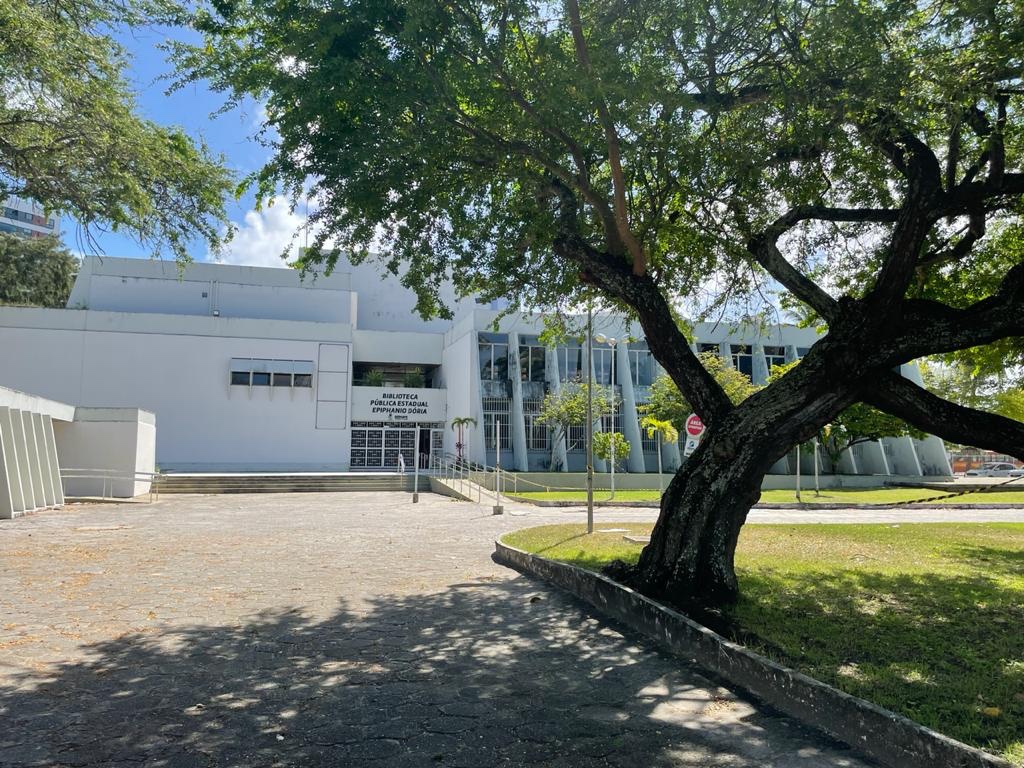 Mais uma caminhada e chegamos na Biblioteca Pública Estadual Epiphanio Doria.