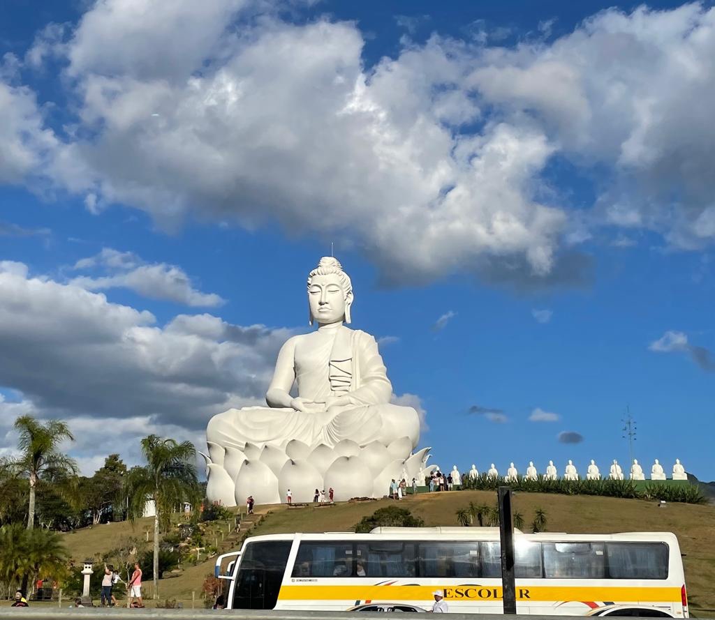 No caminho vimos o Templo Budista da estrada, o Pico da Bandeira e a Lua nascendo! Três visuais muito bonitos.