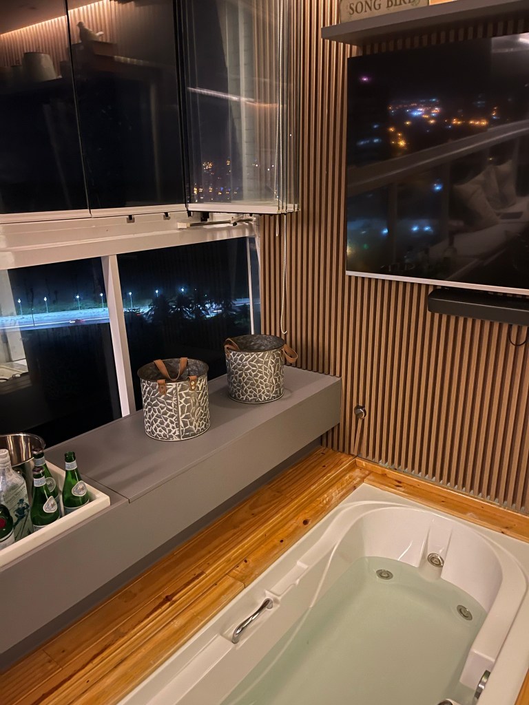 Depois aproveitamos a piscina e a hidromassagem do prédio, vendo o por do sol.