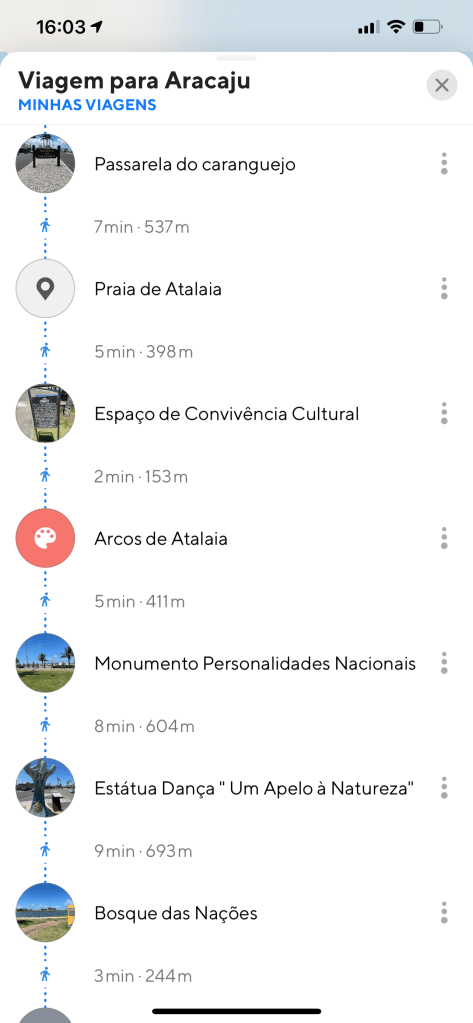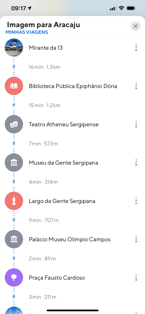 No passeio de 25/08 em Aracaju seguimos este roteiro.