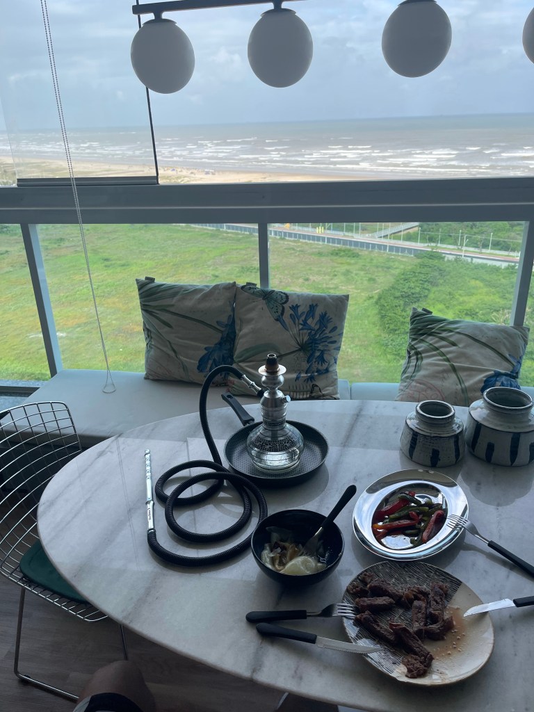 Vista lindíssima da Praia, de muito bom gosto, com banheira de hidromassagem na varanda.