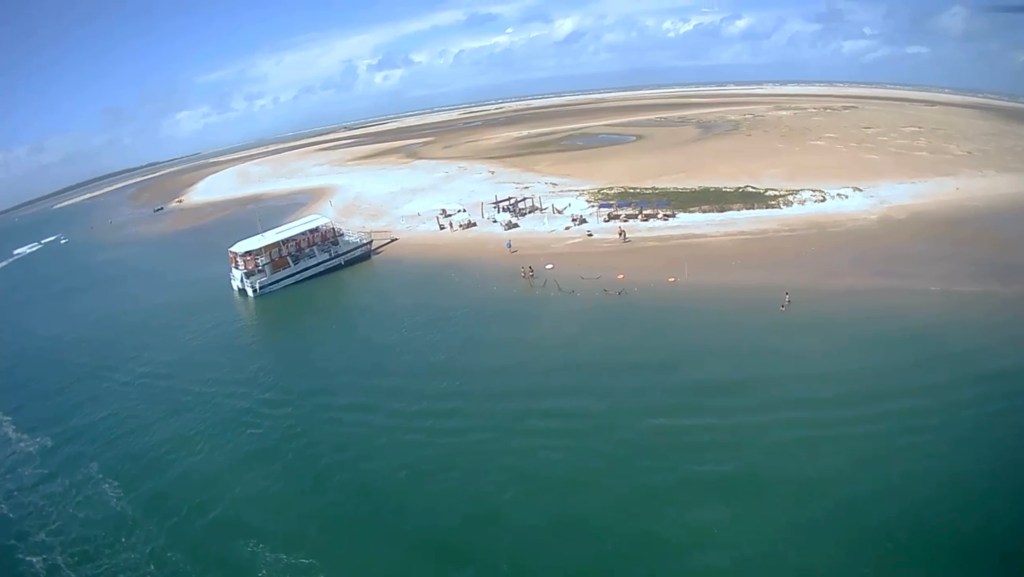 Fomos de Uber até a Orla do Por do Sol, que fica em Mosqueiro, lá pegamos um Catamarã e fomos primeiro a Croa do Goré ( Croa é um banco de areia).
