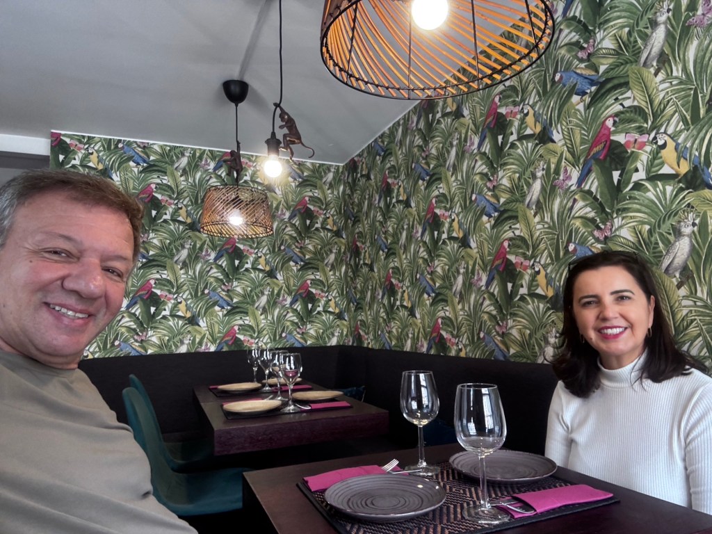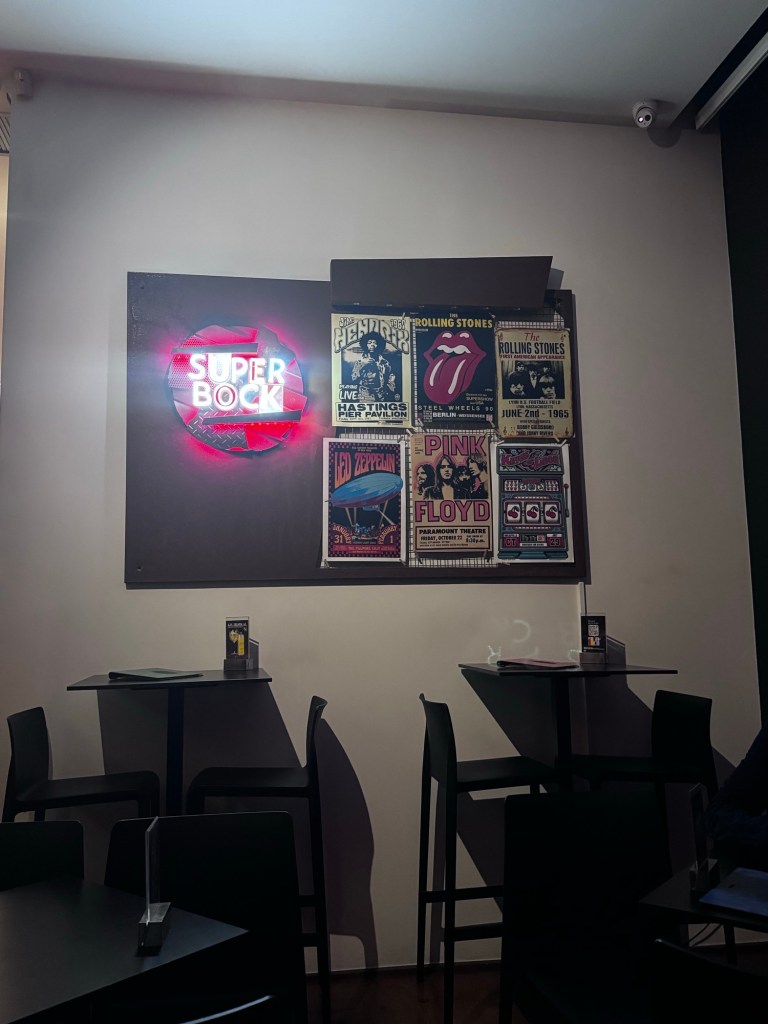 Dia 12/05 Hoje fomos ao Estúdio 22, Fernando queria comer sanduíche e apostamos neste. Acertamos em cheio, compartilhamos dois tipos diferentes Catedral e Barroco, um de cada vez, e ambos estavam deliciosos. Fernando com sua cerveje Stout e eu com o meu vinho branco. Fora o ambiente muito bom e música boa, basta ver as paredes.