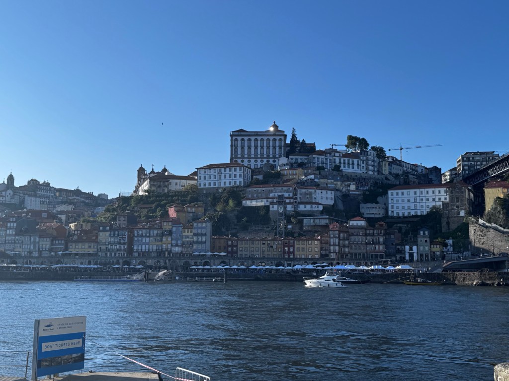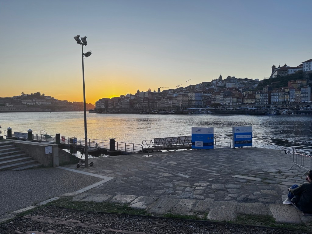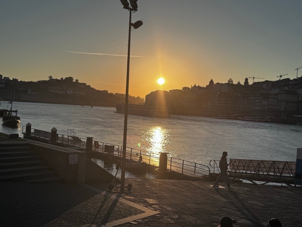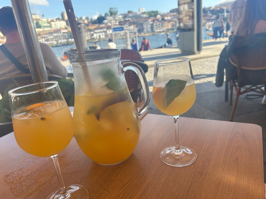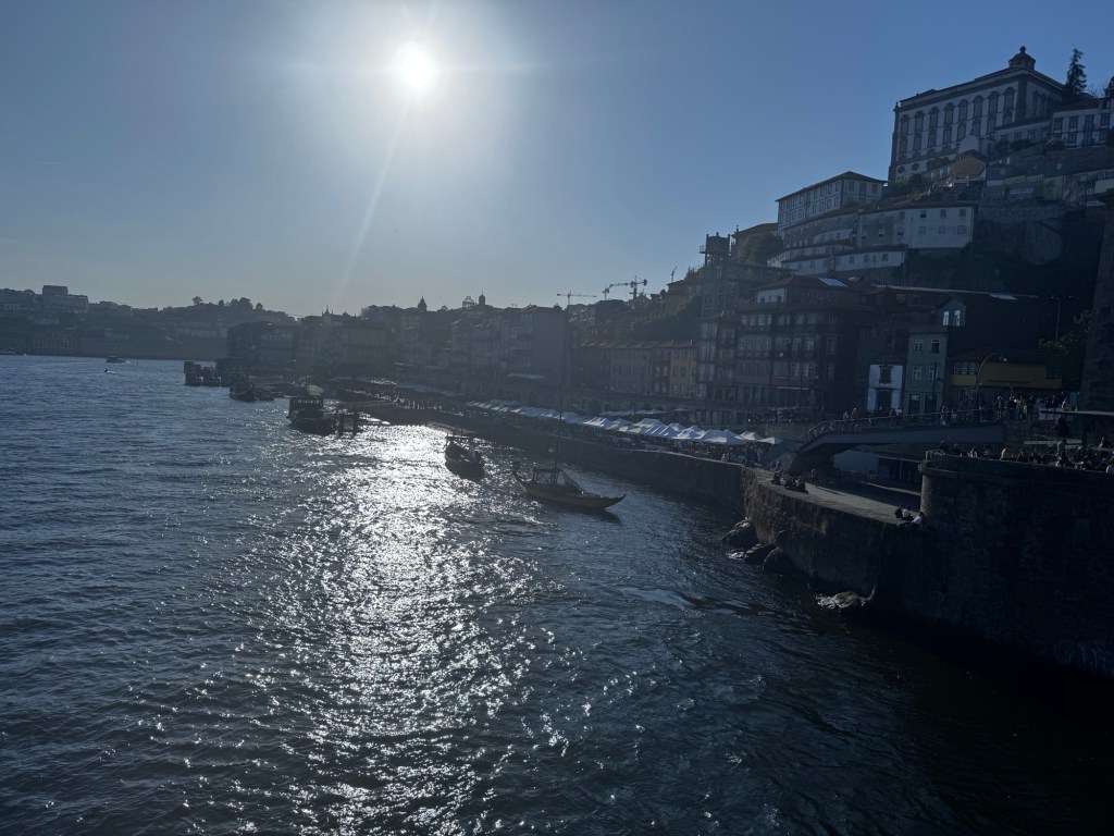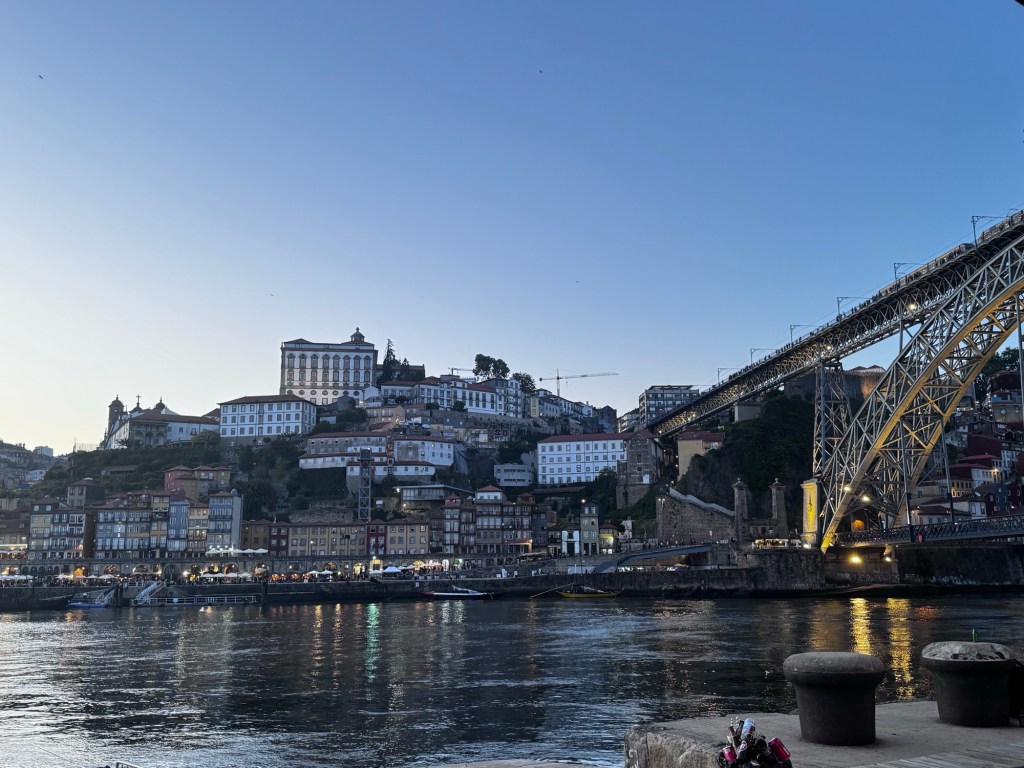 Depois de uma deliciosa caminhada, passando por ruas estreitas e pela ponte do Luís I, chegamos ao Cais de Gaia.
