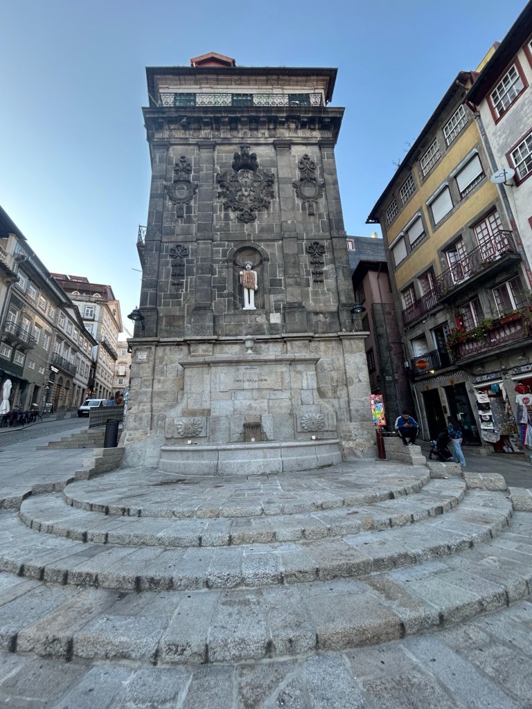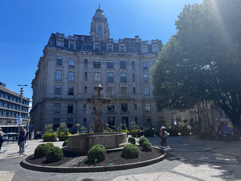 Na praça de Gomes Teixeira chegamos à fonte dos leões, em frente ao prédio da Universidade de Porto, e na lateral a igreja do Carmo