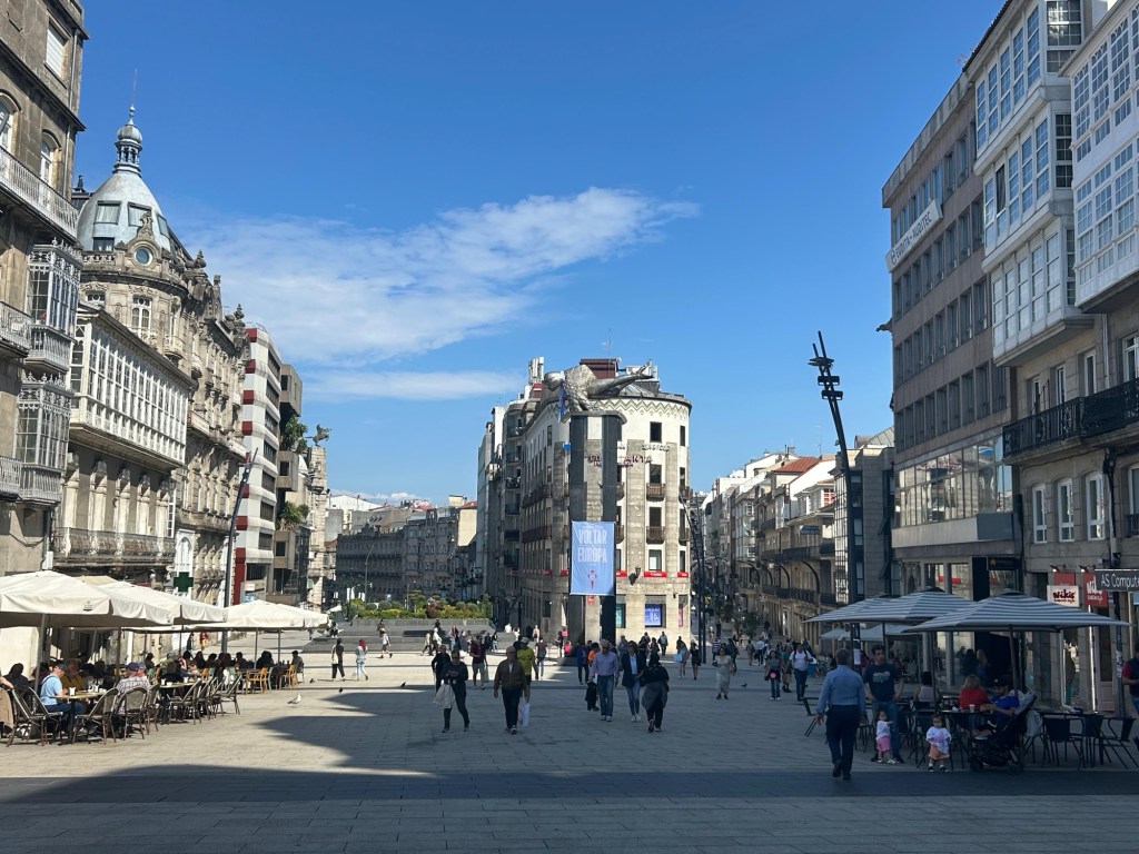 Após chegarmos ao nosso Airbnb, que aliás é muito legal um apartamento bem conservado limpinho, excelente localização. Descemos para passear pela Rua Príncipe uma das principais ruas de Comércio aqui de Vigo, com muita gente passeando muitas lojas passeamos pelo MARCO Museu de Arte contemporânea de Vigo.
