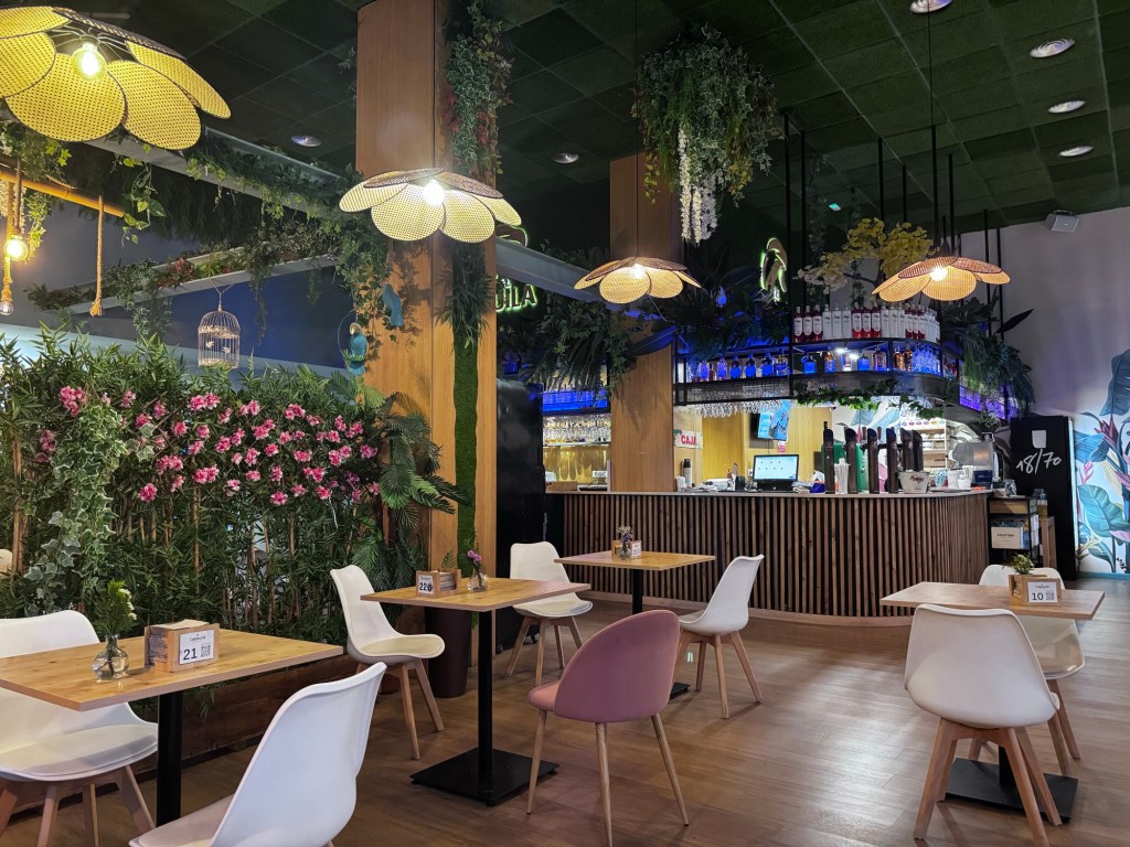 Paramos para jantar no Canaveral Brunch, chopp IPA e vinho branco com tábua de ibéricos e queijos.