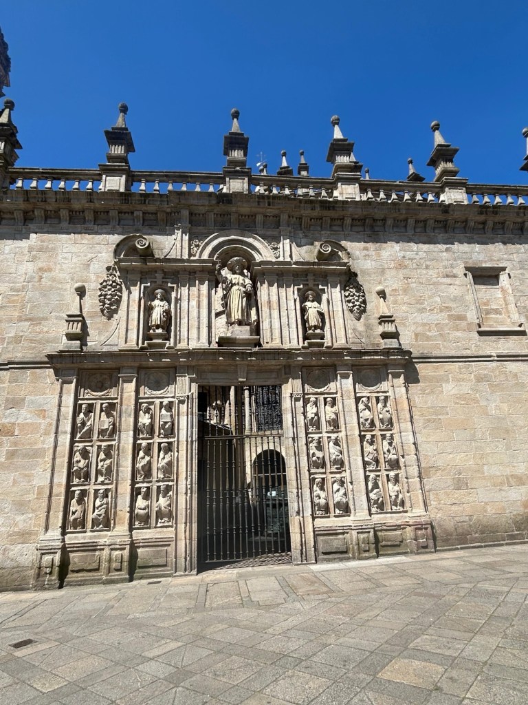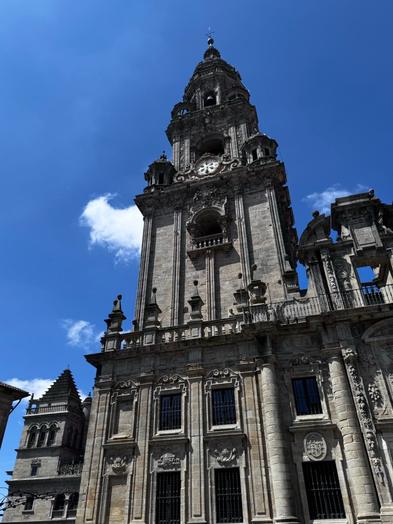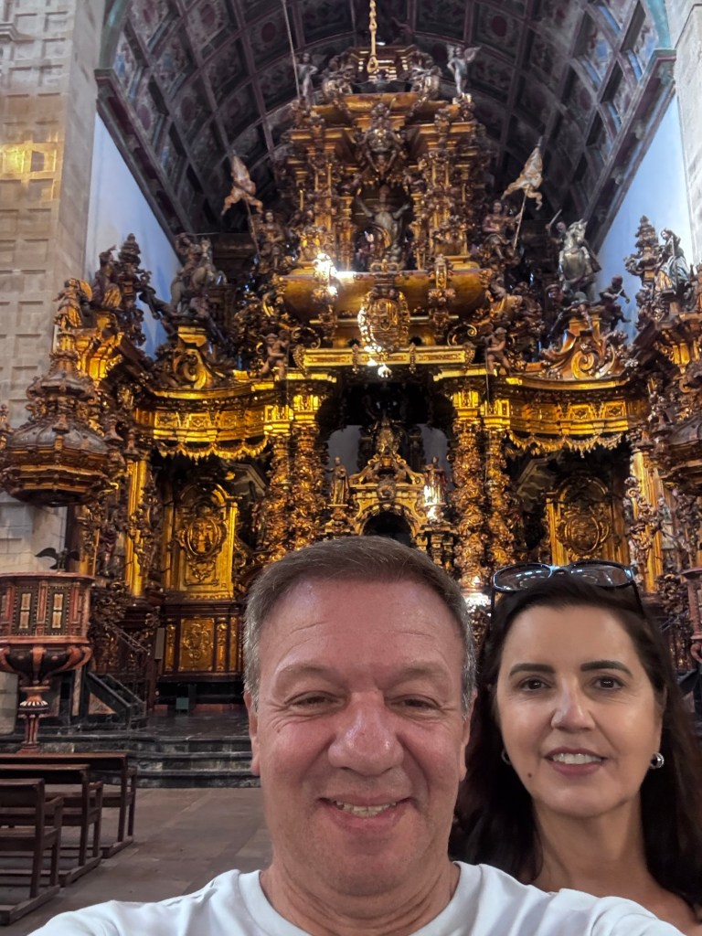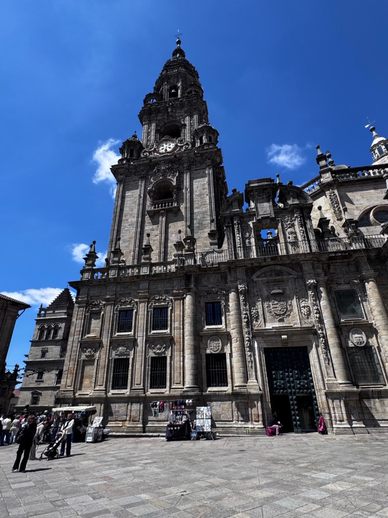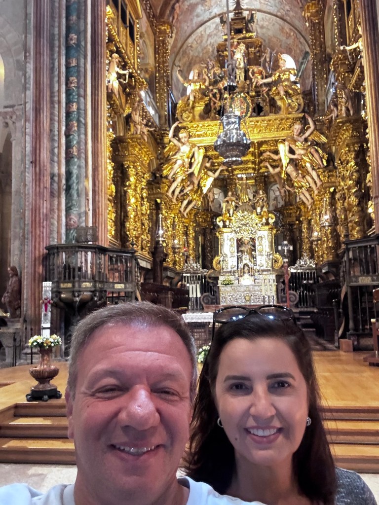 Para entrarmos na Catedral de Santiago de Compostela ficamos em torno de 40 minutos na fila pois estava tendo um evento, mas valeu a pena a Catedral muito bonita e a Val ficou emocionada.