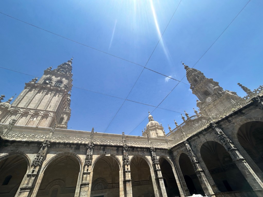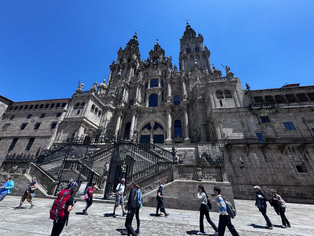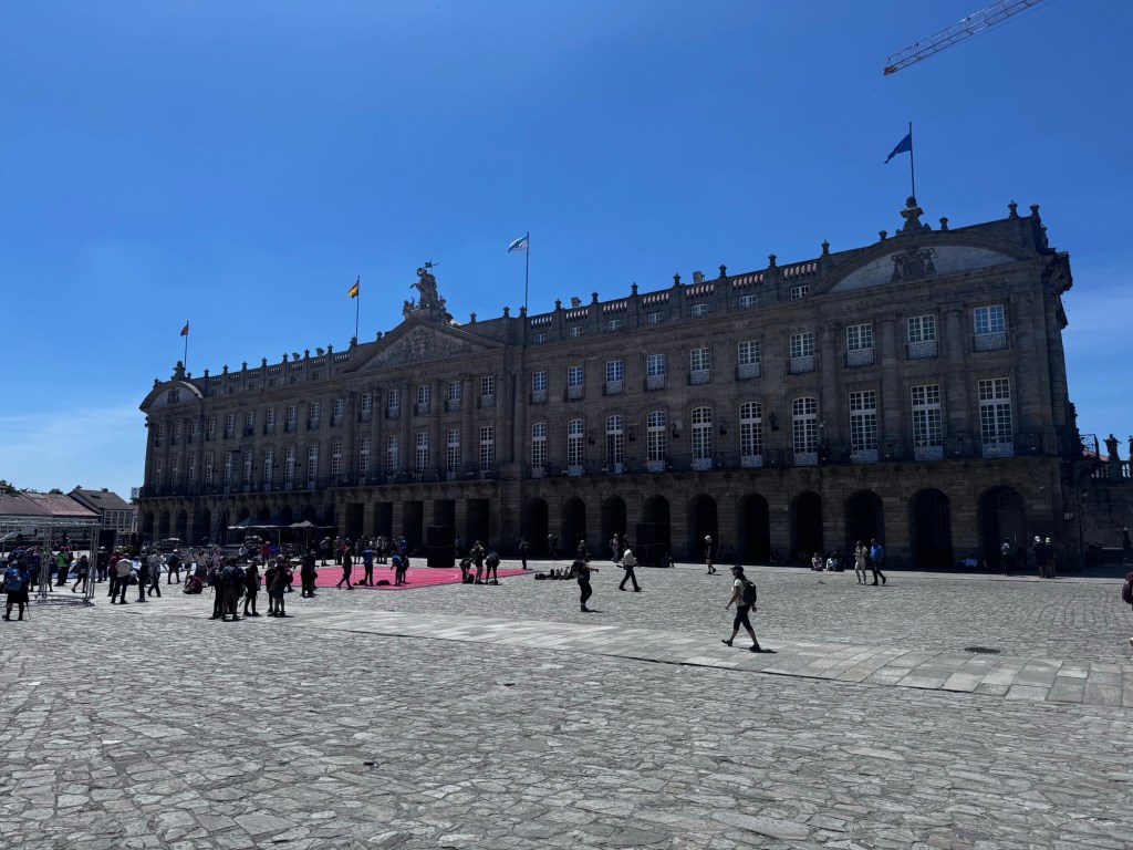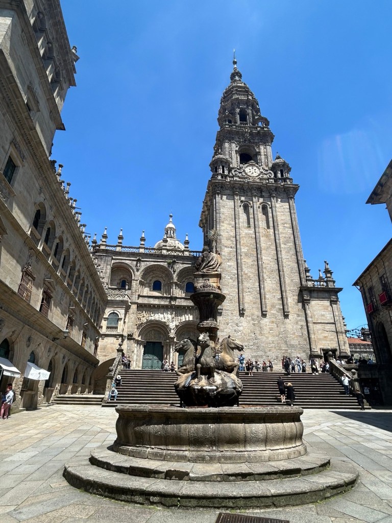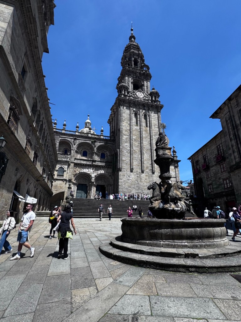Na frente da Catedral de Santiago de Compostela fica a Plaza del Obradoiro.