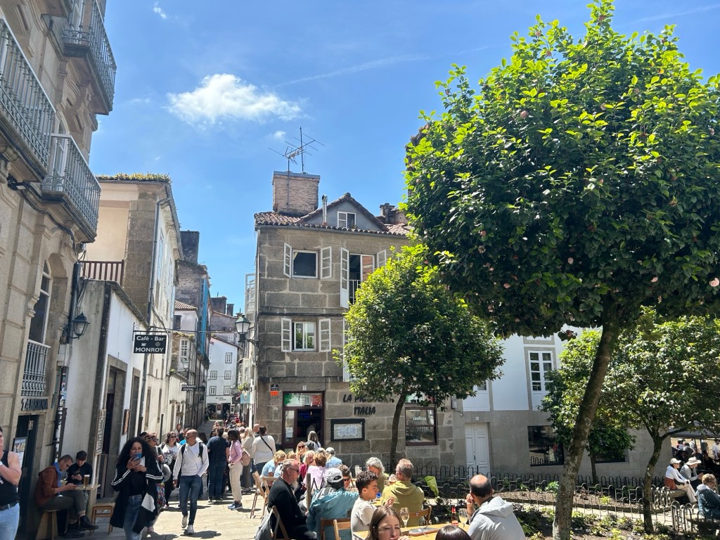 Santiago de Compostela é famoso pelas peregrinações, porém não são apenas peregrinos que estão na cidade existem muito turismo. Na região da Catedral muitos barzinhos e muita gente circulando. Paramos para Almoçar no café e bar Monroy.