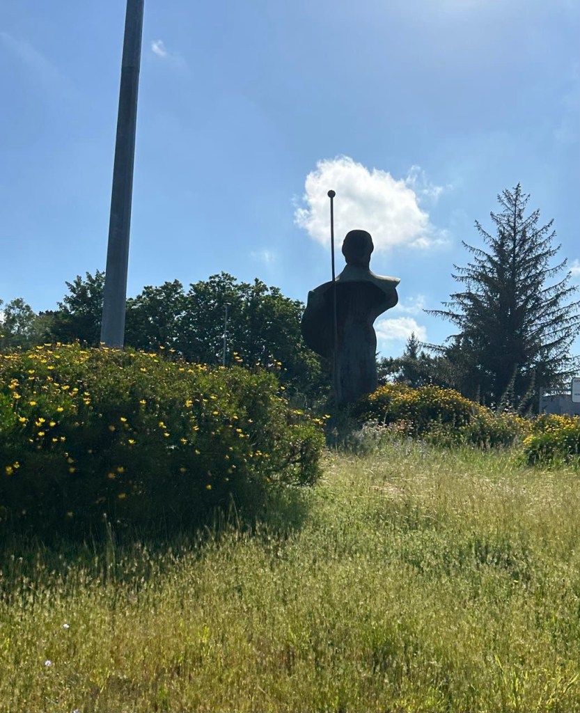 Pelo caminho encontramos o monumento ao Peregrino, que é a imagem de um peregrino com seu cajado, figura muito comum pela Região, que fica próximo ao aeroporto de Santiago de Compostela.