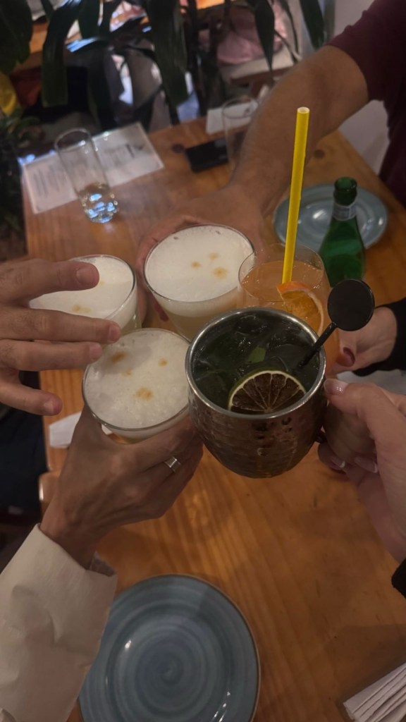 Bebemos pisco sauer, pisco Panch e pisco Mule.
