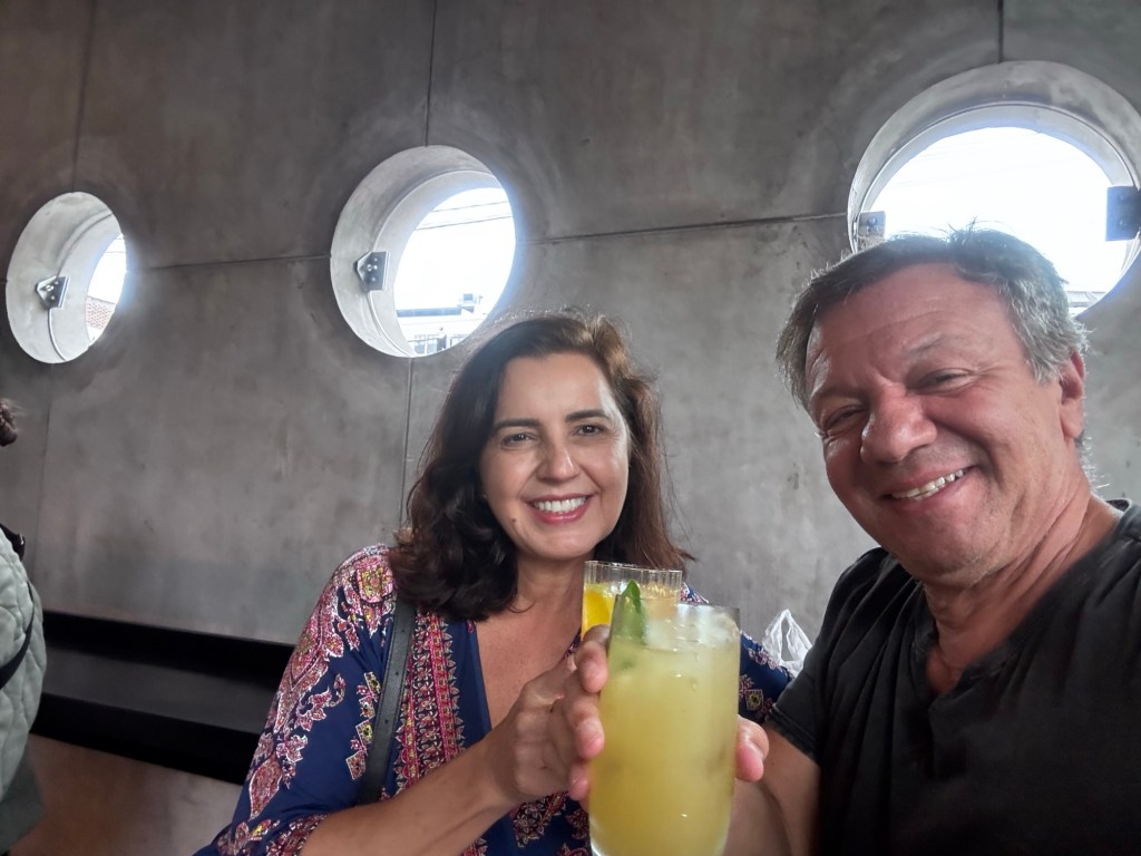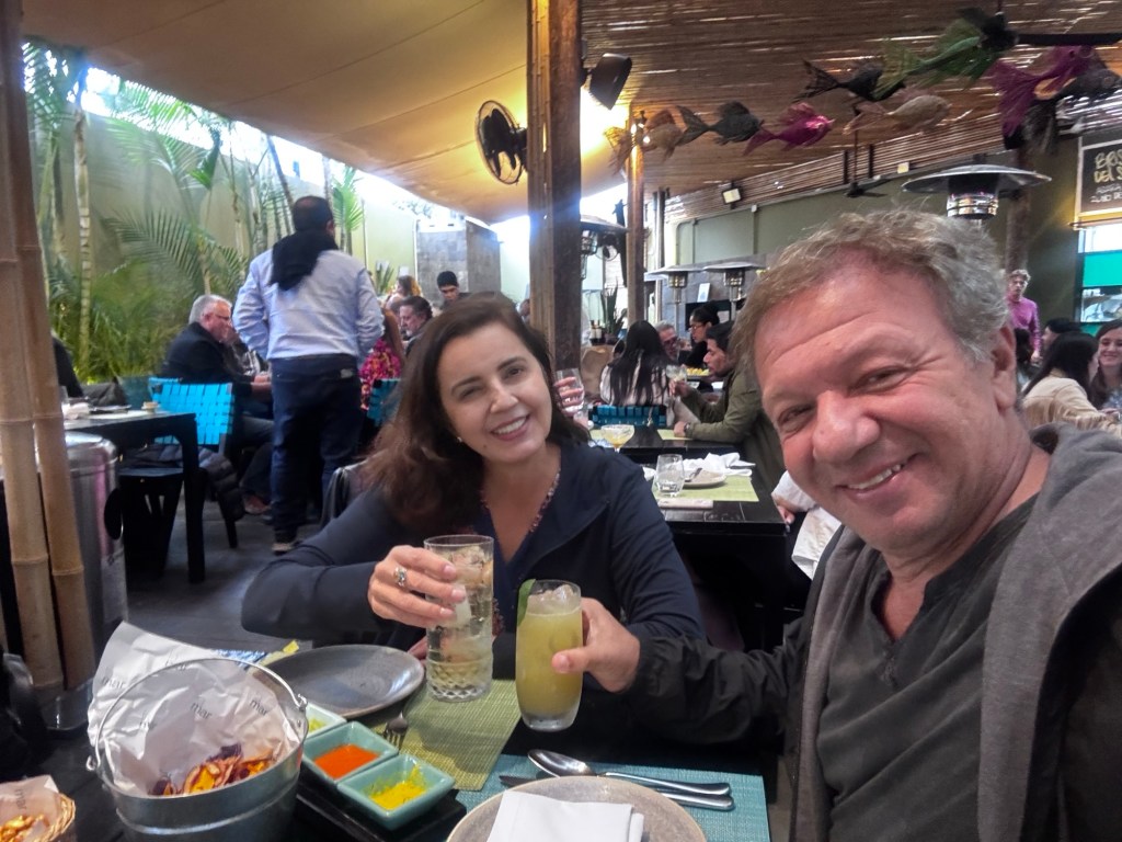 Deixamos as malas no hotel e fomos no La Mar Cevicheria, uma caminhada de 2,5 km, fila de espera de aproximadamente 40 minutos, já pedimos 2 Chilcanos (maracujá e gengibre).