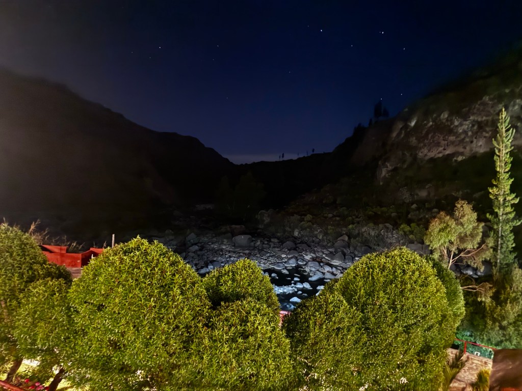 A recepção do hotel é excelente, o atendente depois de explicar tudo te mostra o local para banhos termais coberto e descoberto e ainda deixa no seu quarto garrafas de água, que é comum no Peru, e itens pra você fazer os chás de sua preferência.