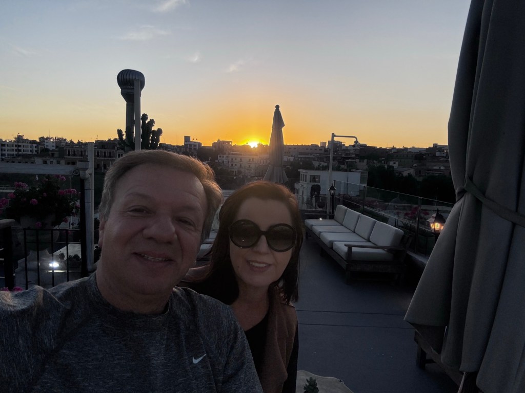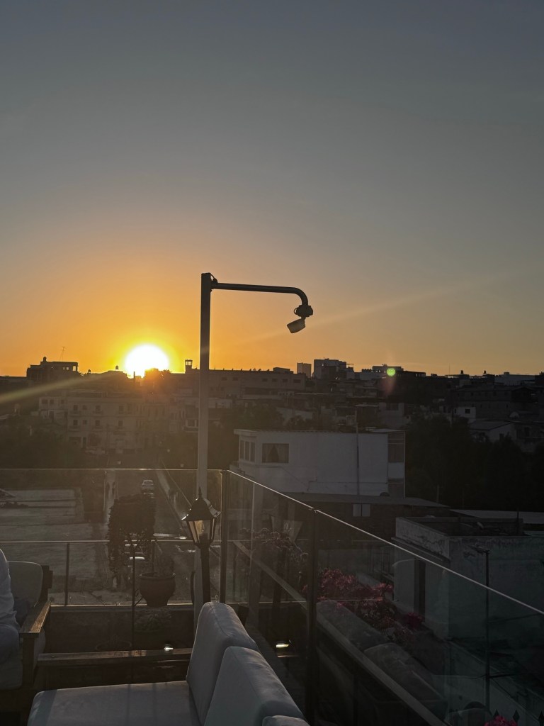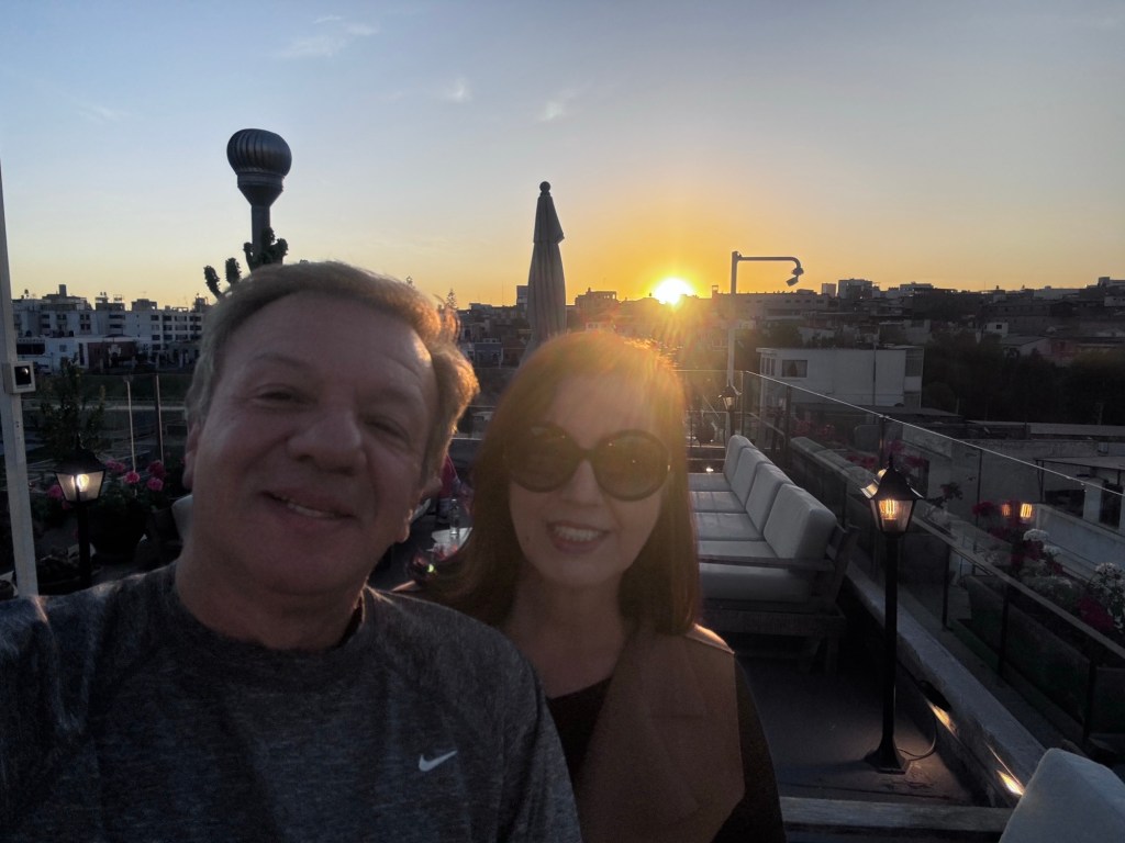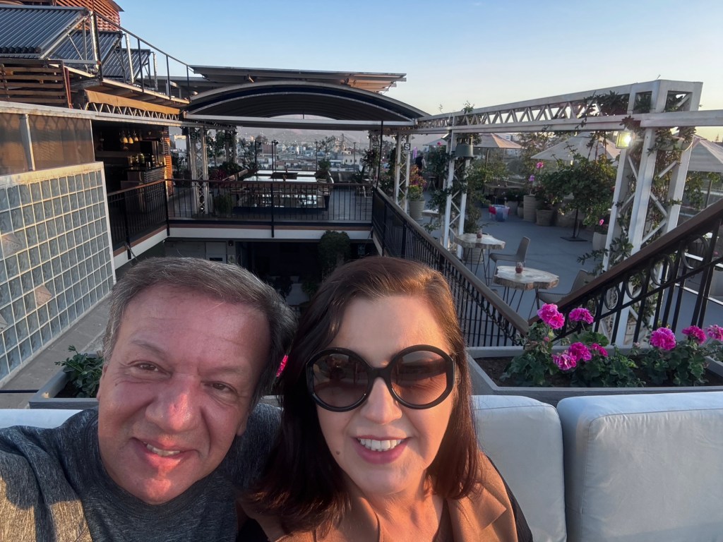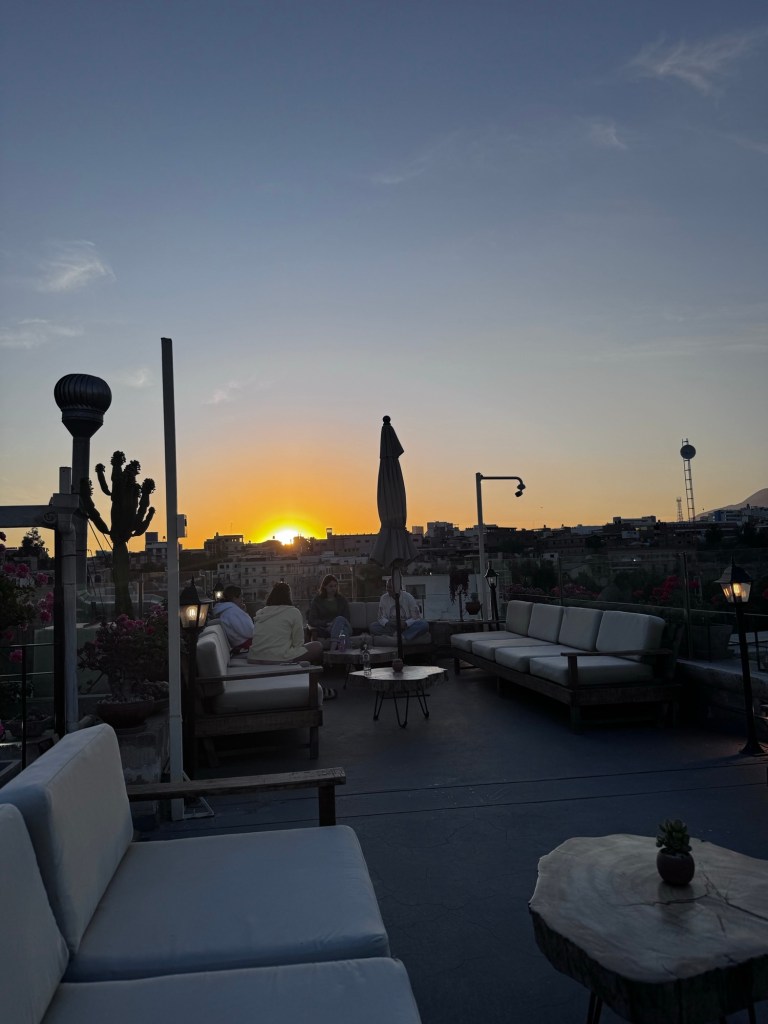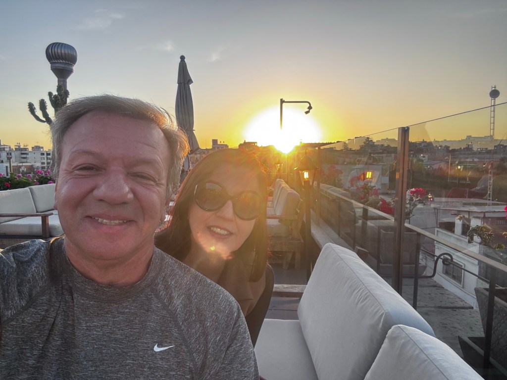 Deixamos nossas malas no quarto e fomos ver o pôr do sol no Rooftop.