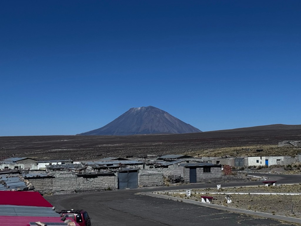 Início do caminho e na sequencia os vulcões Misti e Chachani.