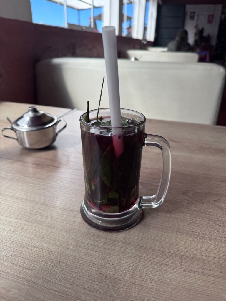 Nessa parada tomamos o Mate Inca de coca com Tuna roja.