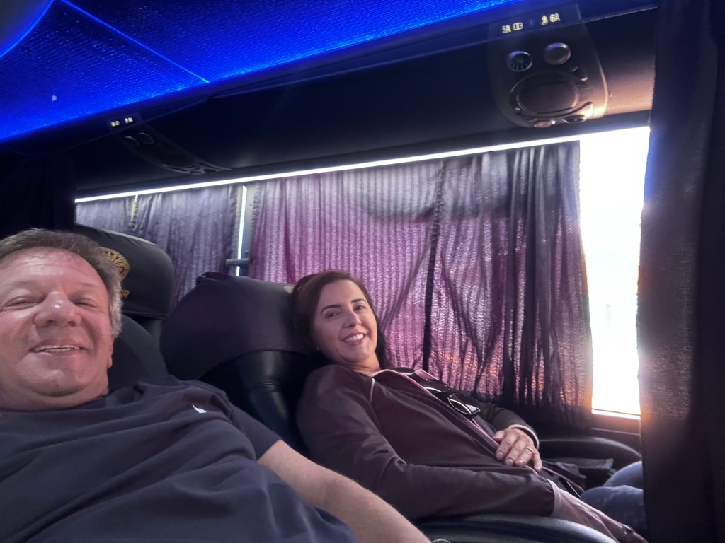 No dia 02/07/2025 pegamos o ônibus da Cruz del Sur às 14h45 em direção a Arequipa, muito confortável, a cadeira deita bastante. Chegamos em Arequipa às 21h45.