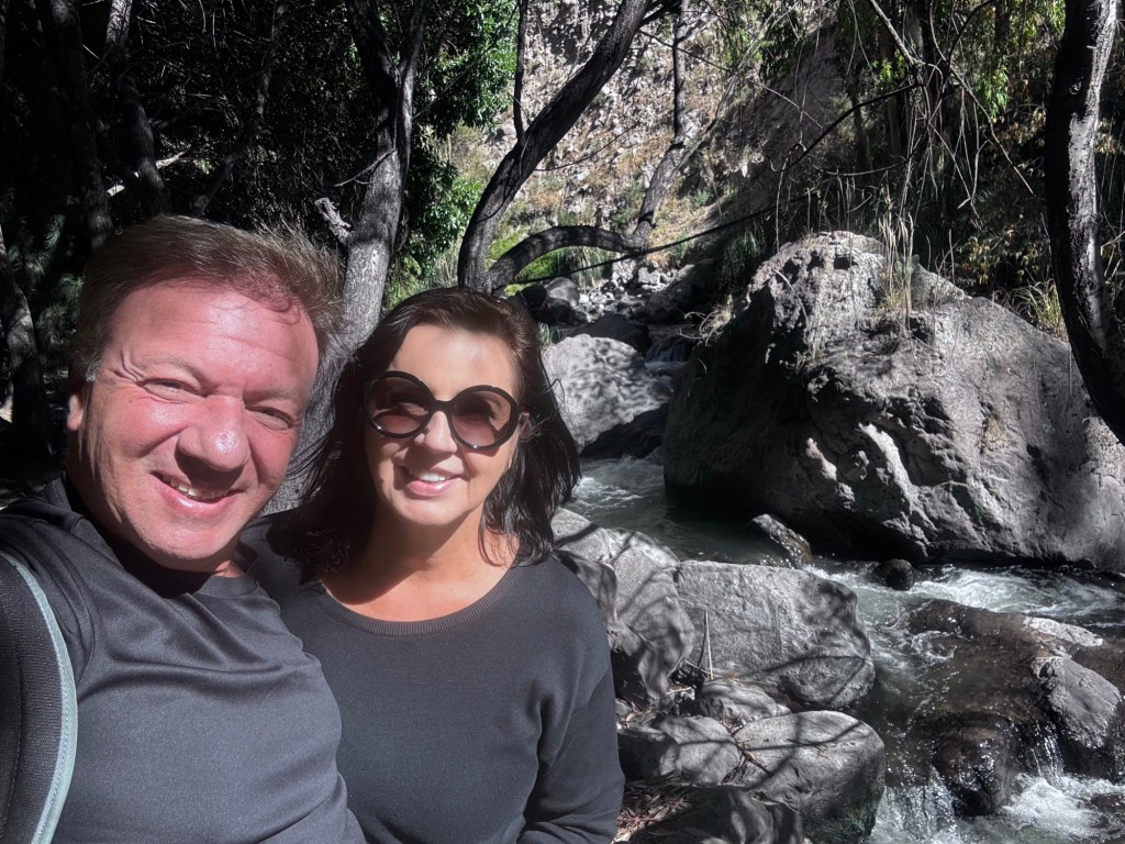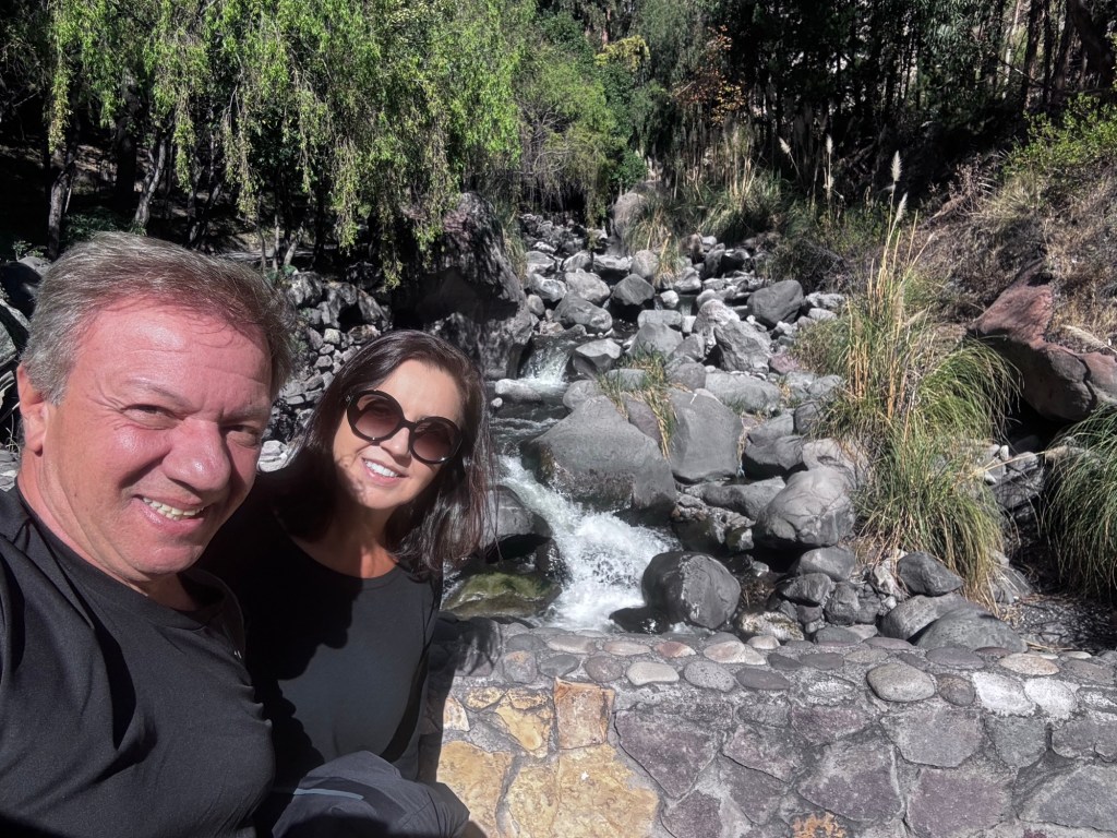 Depois fomos de táxi para o nosso hotel, El Refúgio que está a aproximadamente 8 minutos de carro da cidade e fica entre montanhas, descida a pé para o hotel, visual lindo.