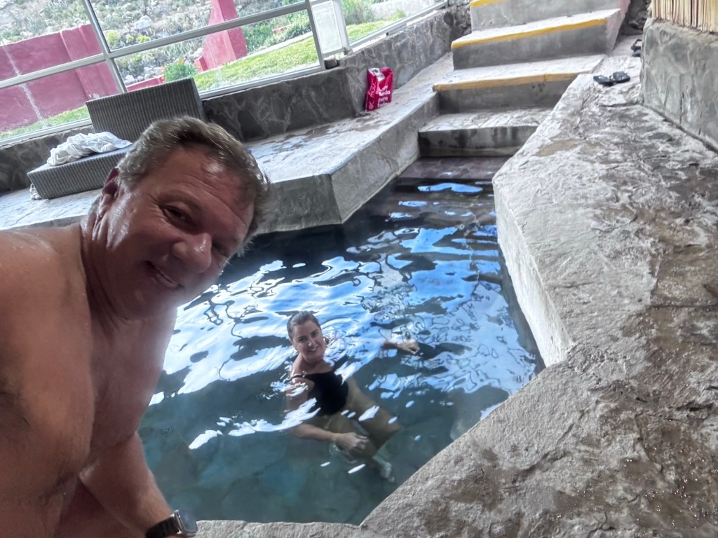 Reservamos às 16h00 a piscina aquecida externa para o nosso banho termal.