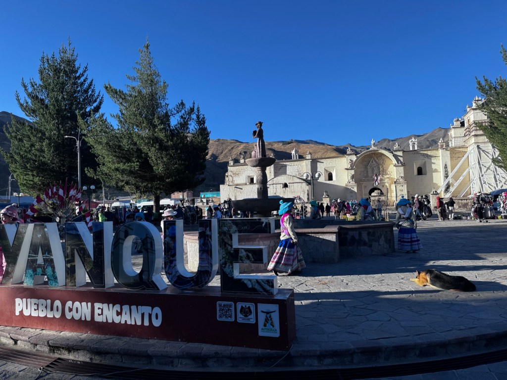 No caminho para o Mirante do Vale do Colca, passamos pelo povoado de Maca,  vimos uma estátua que representa a força da mulher que na guerra contra o Chile, além de serem enfermeiras, cozinheiras, lutaram.