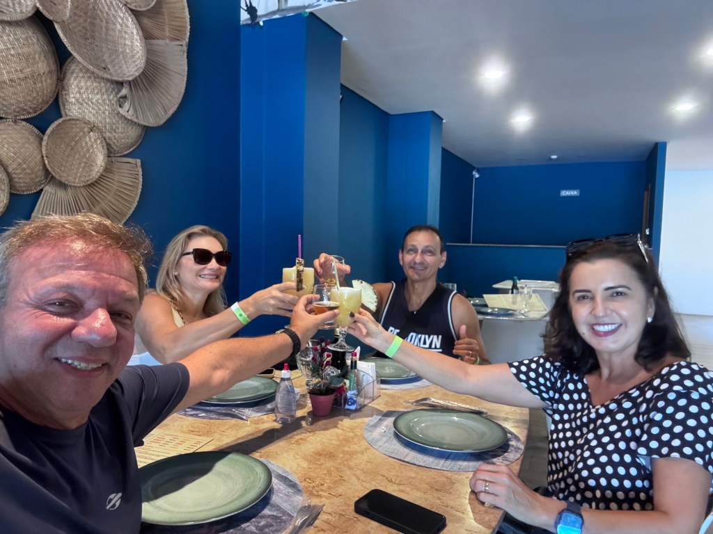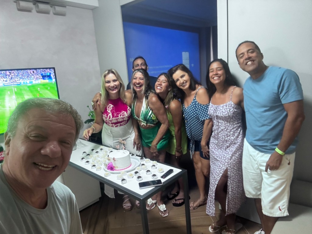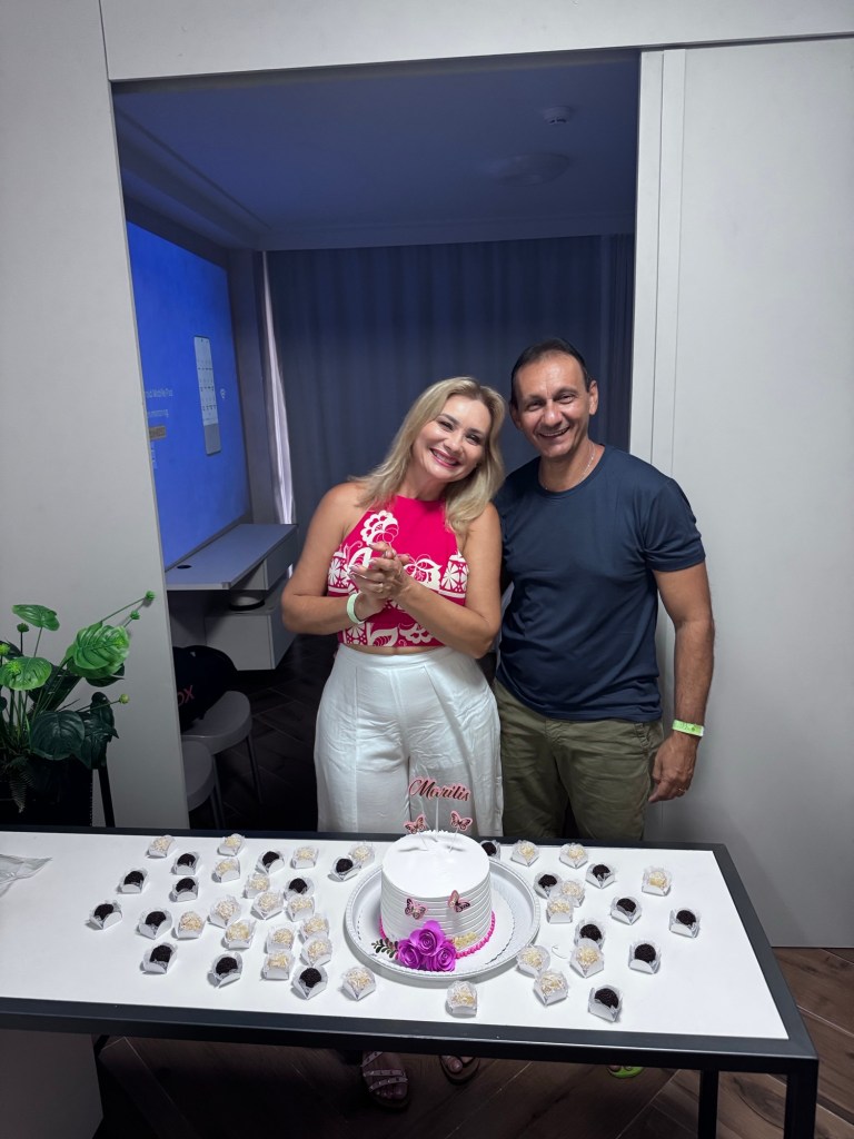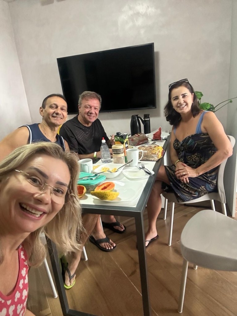 O terceiro dia foi especialmente significativo, iniciando com um café da manhã comemorativo no apartamento do Coutinho e da Mara, celebrando simultaneamente o aniversário da Mara e o Dia dos Pais – uma dupla comemoração que tornou o momento ainda mais especial. Todos os pais presentes foram homenageados e ganharam presente da da Letícia e da Sabrina que estavam representando todos os filhos lá, muito lindas e queridas, foi um momento muito especial.