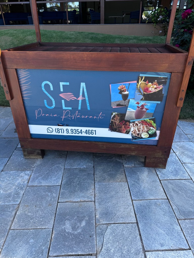 Nosso primeiro almoço foi no Sea Praia Restaurante (@seapraia_carneirosbeach), localizado dentro do próprio resort. O cardápio nos surpreendeu positivamente com especialidades que combinam o melhor da culinária regional e internacional: