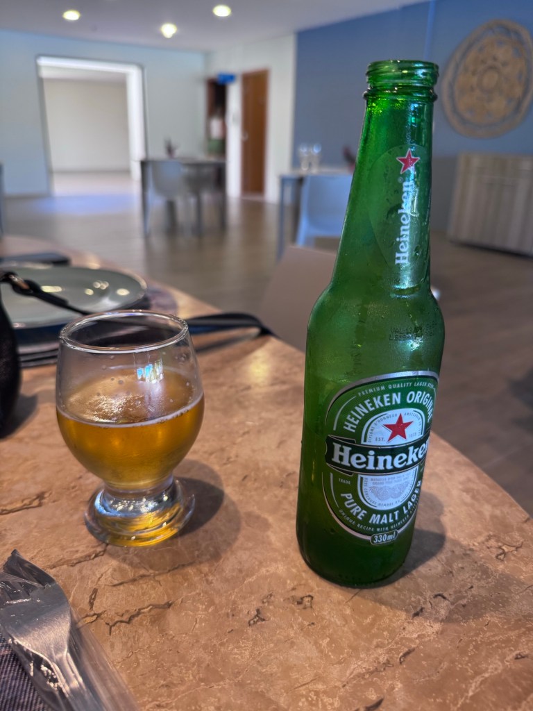 Para acompanhar, desfrutamos de cerveja e caipirosca, bebidas ideais para o clima tropical da região.