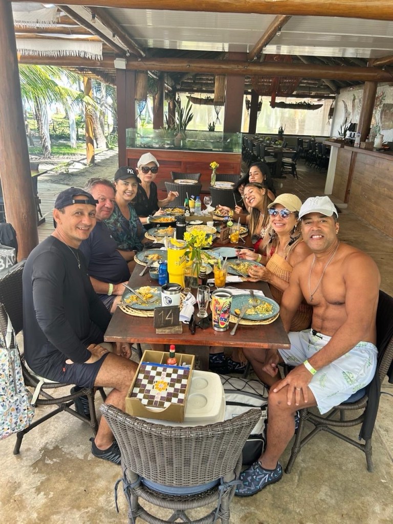 Após o passeio marítimo, desfrutamos de um almoço memorável no Beijupirá, onde a experiência gastronômica foi elevada a outro patamar. Acompanhados de whisky, caipiroscas e cervejas, saboreamos pratos que representam o melhor da culinária regional contemporânea: