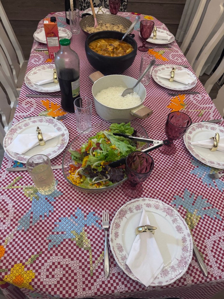 Dia 23/08 foi especialmente significativo, pois celebrávamos o aniversário da Vanilda, irmã da Val. A manhã começou com café da manhã e os preparativos, salão para maquiagem e cabelo da Val e da Zane.