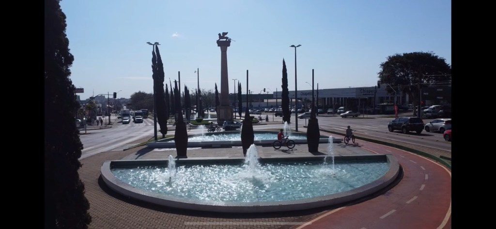 Caminhamos pela Avenida Brasil, a principal via e espinha dorsal de Cascavel, com 70 metros de largura e 12 quilômetros de extensão. Surgiu na década de 1960 como resultado do desvio da BR-277, sendo concebida com base nos conceitos urbanísticos de Brasília, privilegiando eixos monumentais e canteiros centrais paisagísticos. Após reformas em 2016 pelo Plano de Desenvolvimento Integrado, a avenida hoje combina harmoniosamente comércio, lazer e história, abrigando ciclovias, parques infantis, academias ao ar livre e importantes marcos como as praças do Migrante, da Bíblia, Getúlio Vargas e a Catedral Metropolitana, consolidando-se como o verdadeiro corredor de vida urbana que conecta Cascavel de leste a oeste.