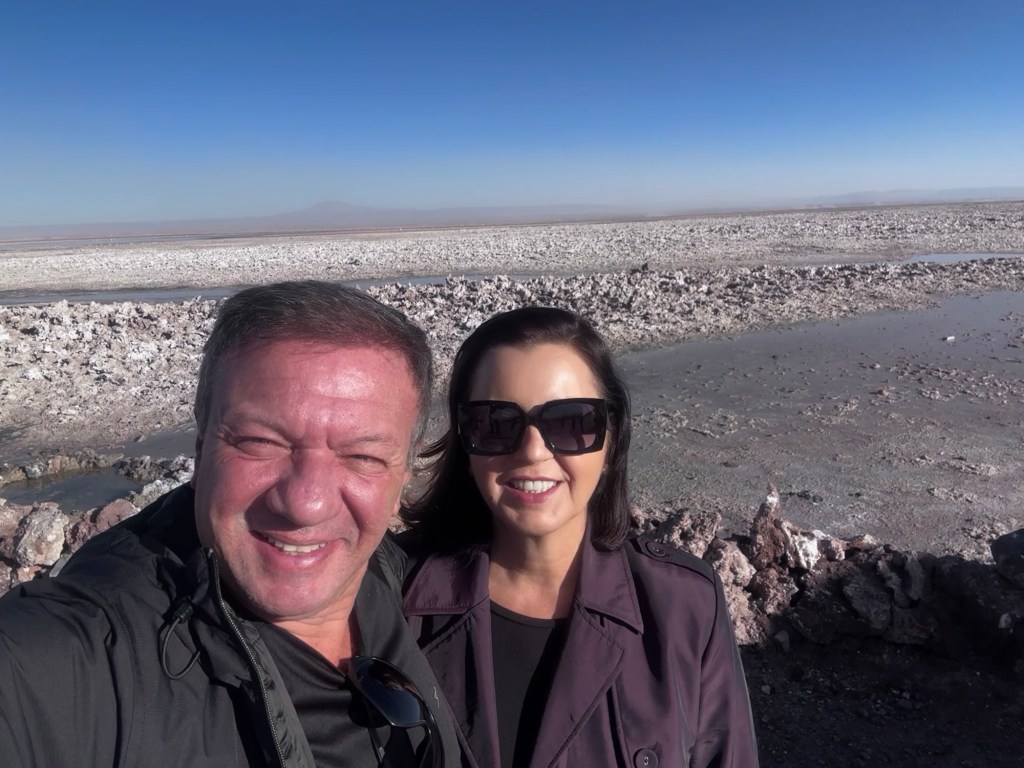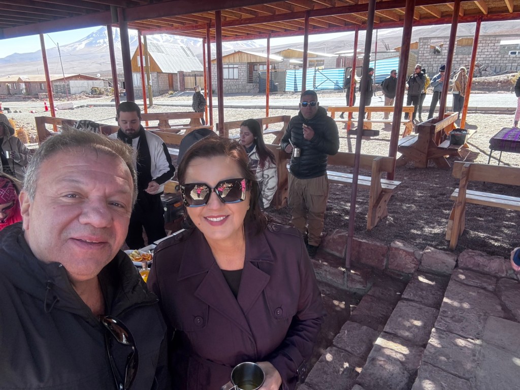 A manhã de 30 de agosto começou cedo, as 06:30 café da manhã no hotel e as 07:00, com Soraya como nossa guia e Ronaldo ao volante. A energia da expedição estava no ar enquanto nos preparávamos para descobrir alguns dos tesouros mais espetaculares do Deserto do Atacama.
