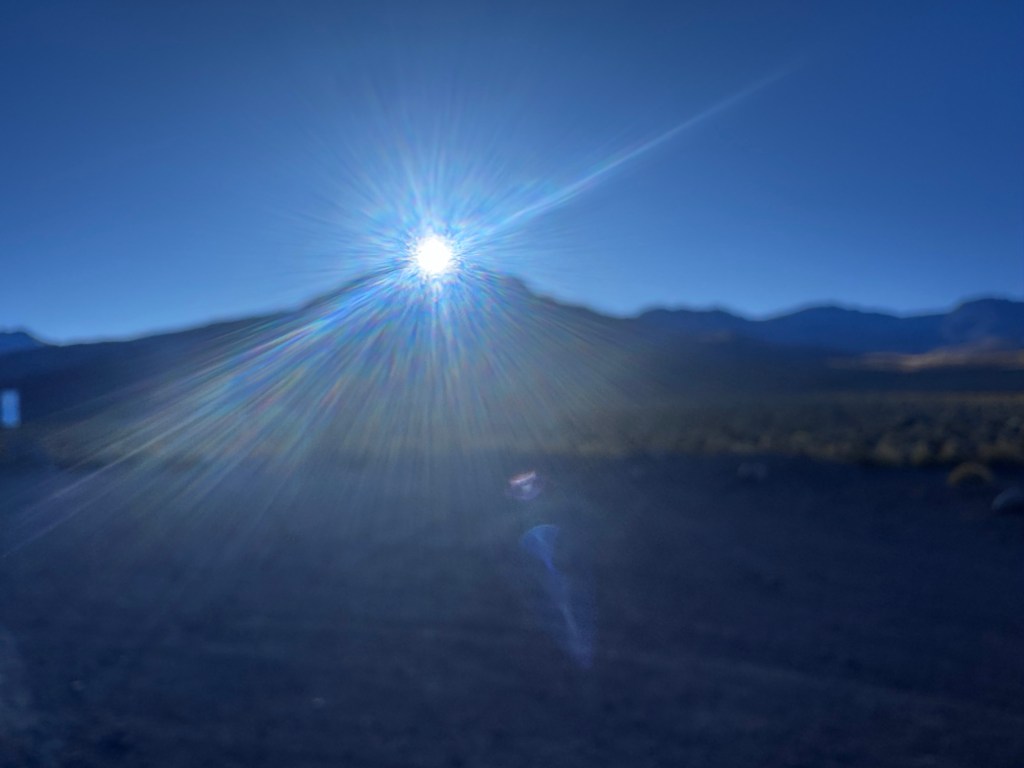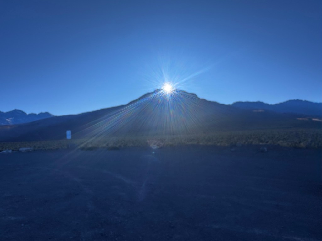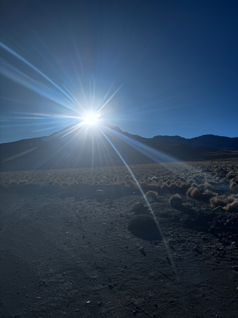 Outro espetáculo lindo que presenciamos foi o nascer do sol com o céu limpo e muito azul do Atacama.