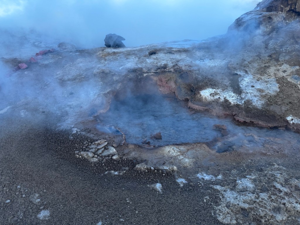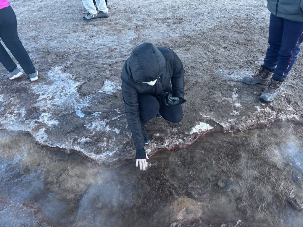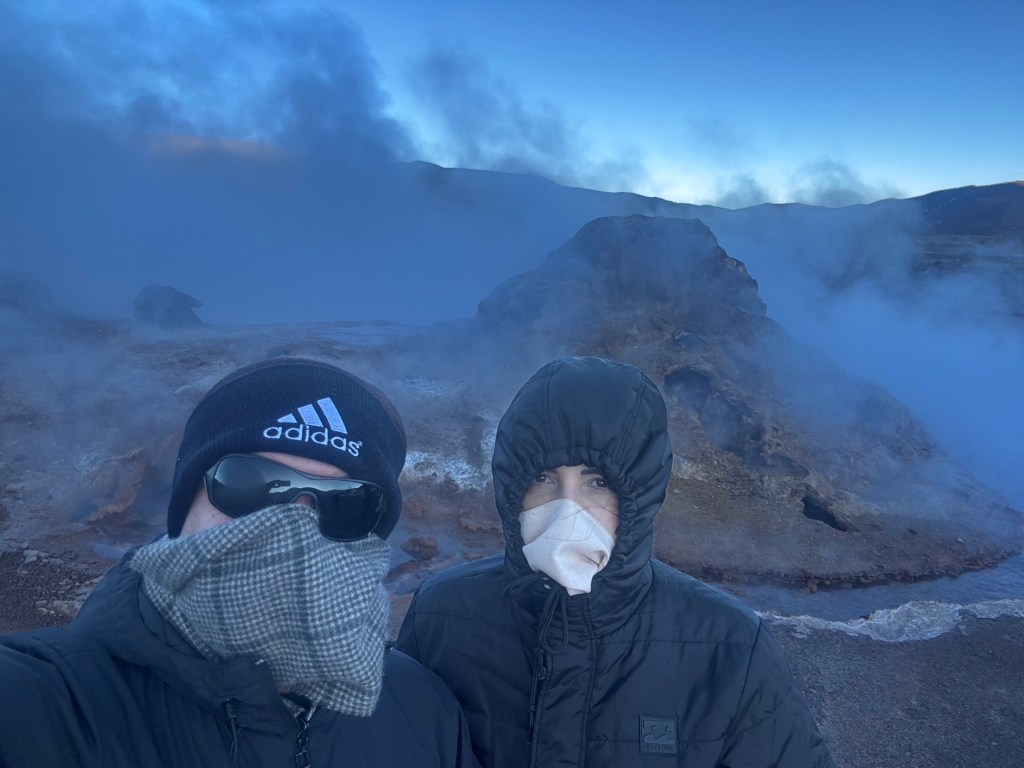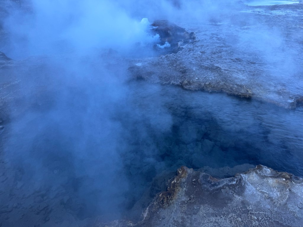 Chegamos aos Geysers com uma temperatura de -8°C – bem mais rigorosa que os -4°C inicialmente esperados. O frio extremo era necessário para o espetáculo que estávamos prestes a presenciar.