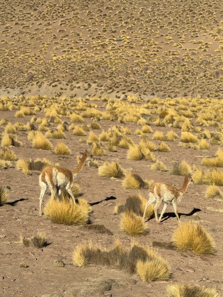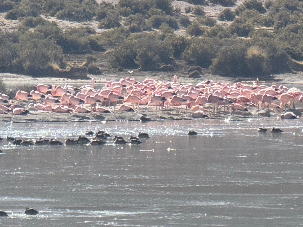No caminho de volta, visitamos o Bofedal de Putana, uma área úmida aos pés do vulcão Putana (5.890 metros), um dos mais de 2.000 vulcões ativos da Cordilheira dos Andes. Este oásis natural abriga uma rica fauna andina, incluindo vicuñas, flamingos, patos andinos, taguas e gansos andinos.
