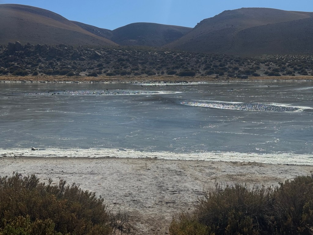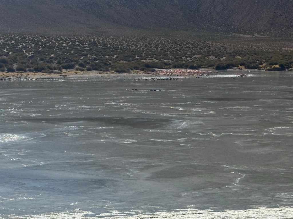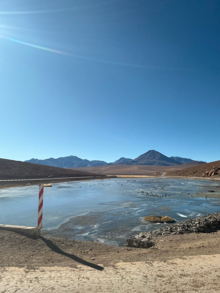 Na saída, paramos para foto no lago dos flamingos próximo a Machuca, depois seguimos para San Pedro de Atacama.