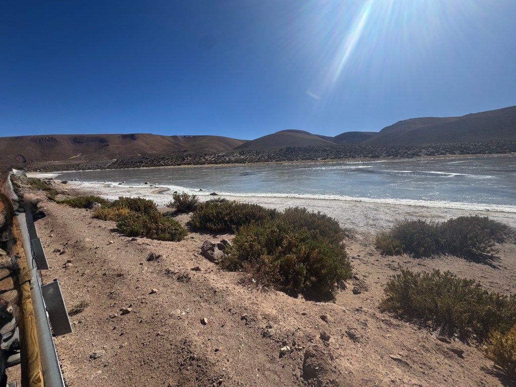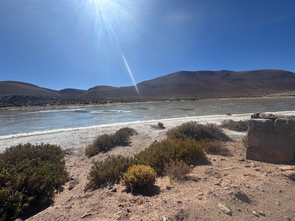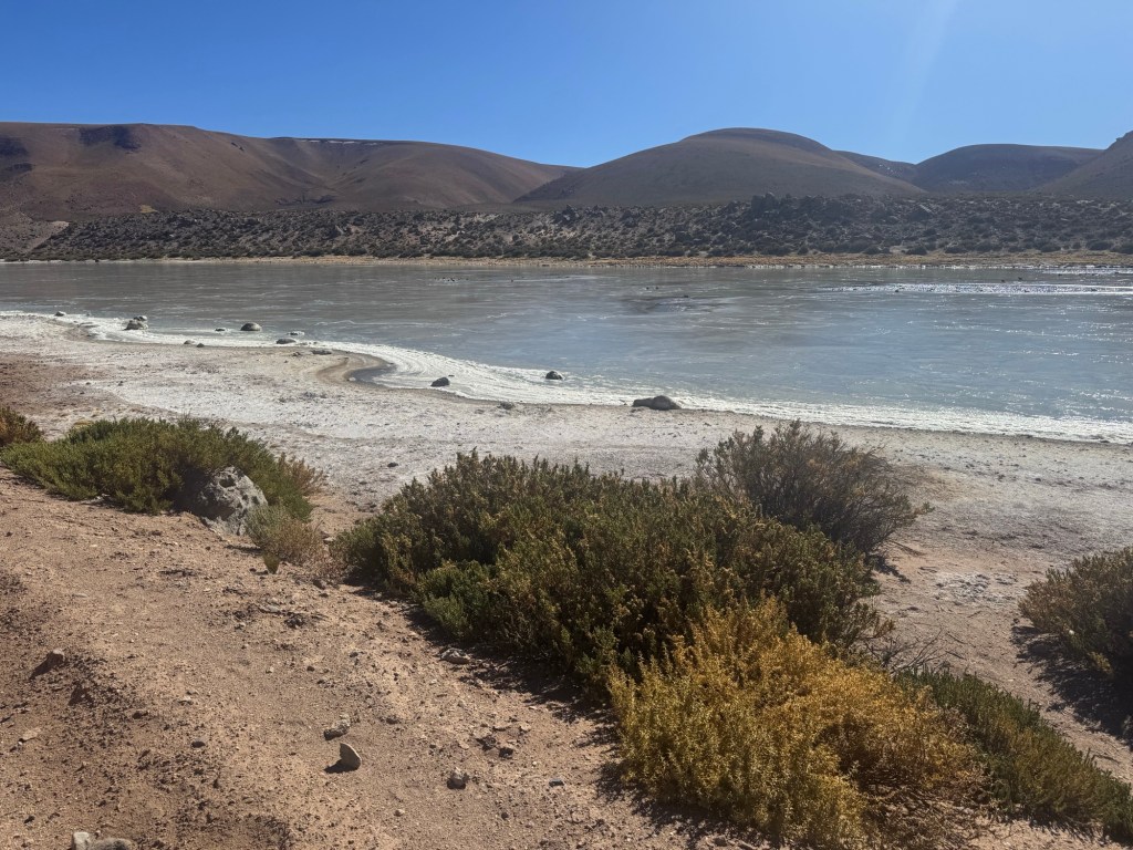 Durante nossa caminhada, observamos a vegetação resistente do altiplano. A vegetação local é extremamente resistente porque precisa suportar condições brutais: neve, gelo e temperaturas que queimam qualquer planta mais delicada. Apenas as plantas mais resistentes conseguem sobreviver às condições frias e extremas deste território andino.