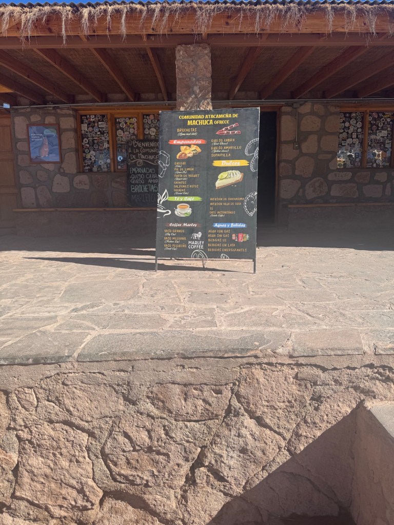 Nossa última parada foi o vilarejo de Machuca, uma pequena comunidade andina com aproximadamente 20 casas construídas em adobe e madeira de cacto. Esta vila tradicional, localizada a cerca de 4.000 metros de altitude, mantém vivas as tradições do povo atacamenho.