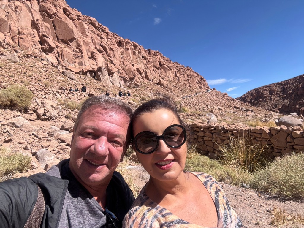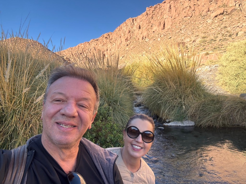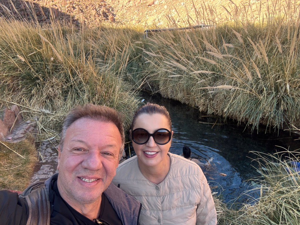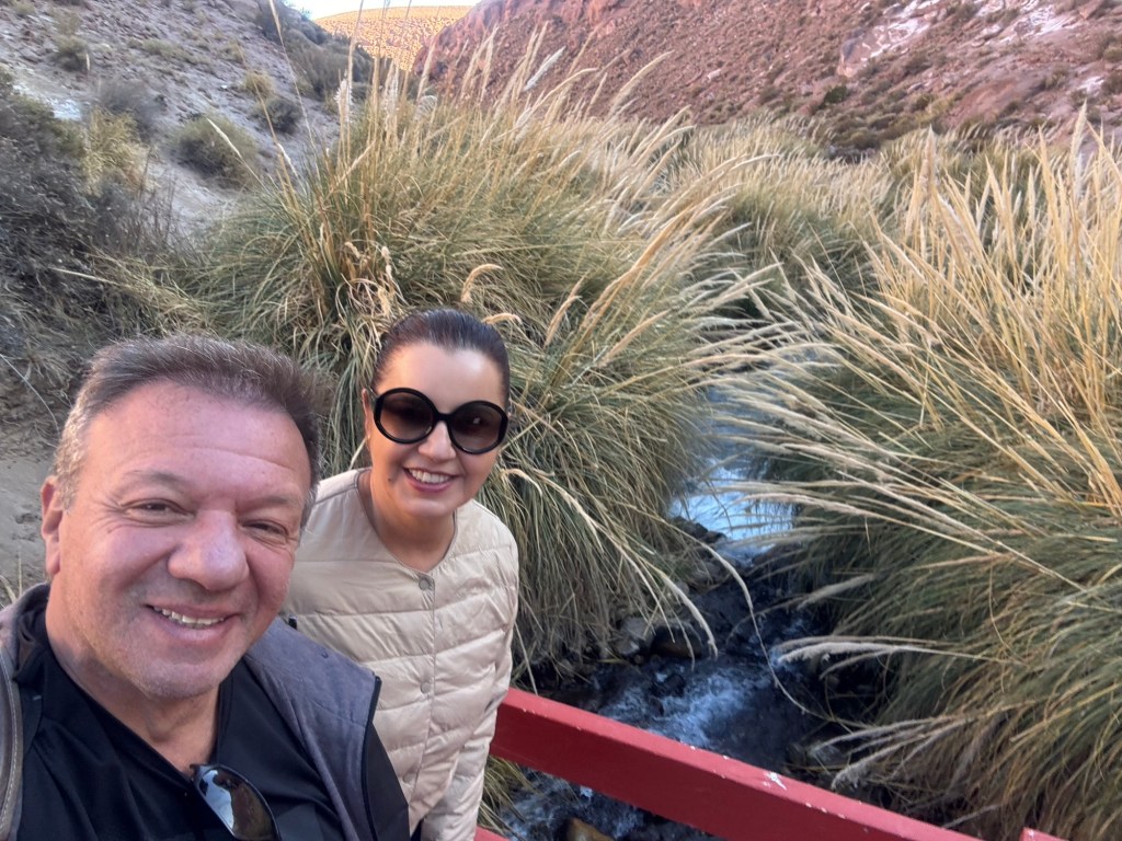 O retorno ao hotel foi igualmente prazeroso. Às 17h, pegamos nosso táxi e fizemos o trajeto de volta. Durante a viagem, pudemos apreciar as cores do pôr do sol tingindo as montanhas do Atacama de tons dourados e avermelhados – um espetáculo à parte que coroou perfeitamente nosso dia.