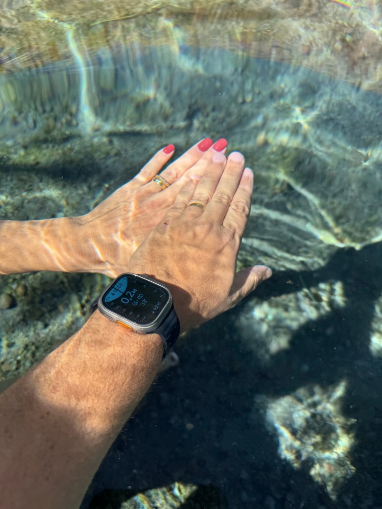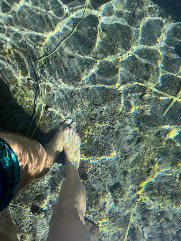 Durante nosso banho, pudemos observar pequenos peixes nadando conosco – uma experiência única e inesquecível.