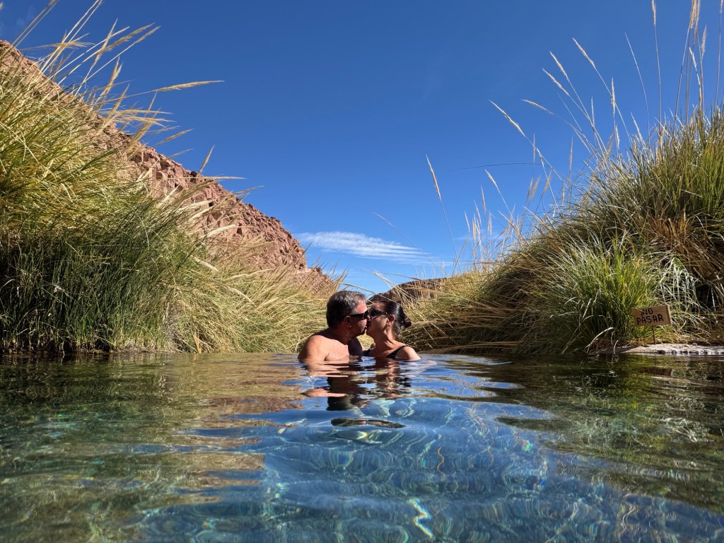 A água das thermas possui propriedades terapêuticas naturais, ricas em minerais que são benéficos para a pele e o corpo. Depois de dias explorando o deserto do Atacama, o mergulho nessas águas quentes foi exatamente o que precisávamos para relaxar os músculos e recarregar as energias.