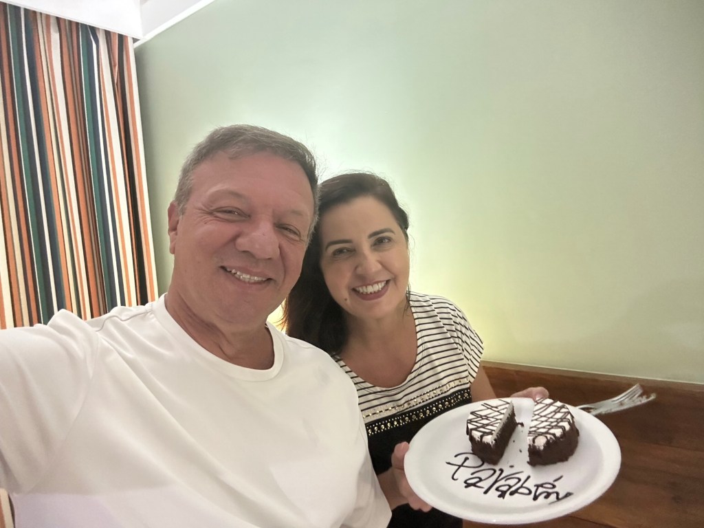 E a meia noite, bolo com vela para comemorar meu aniversário, obrigado, meu amor!!