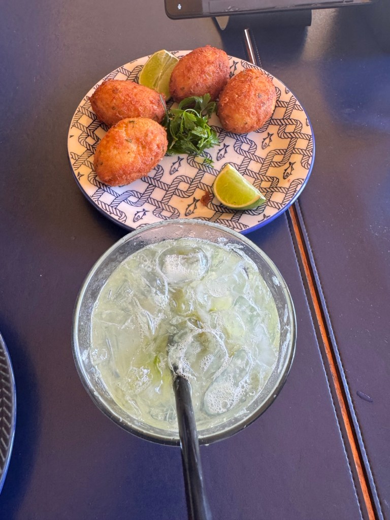 Na HLC Lanchonete, localizada dentro do próprio Mercado Modelo, provamos um delicioso petisco de camarão à milanesa acompanhado de Guaraná Zero. O camarão, fresco e bem temperado, representou mais uma expressão da rica culinária baiana que combina frutos do mar locais com técnicas culinárias que misturam influências africanas, portuguesas e indígenas.