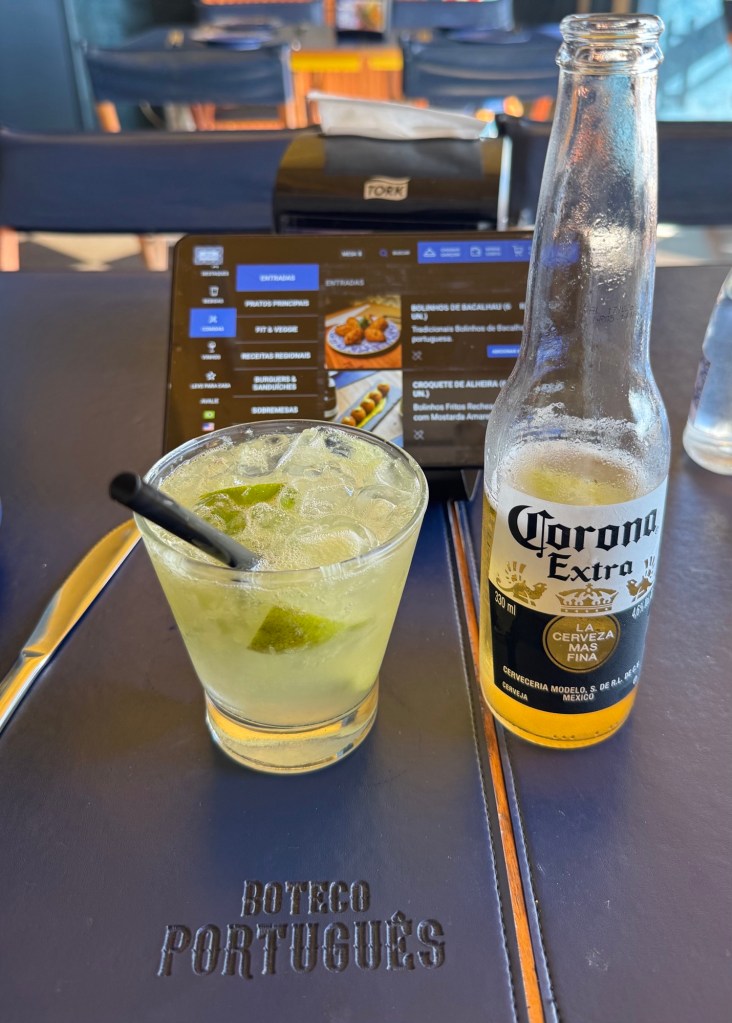 Após nos instalarmos, fizemos uma caminhada de aproximadamente 1 km até o Boteco Português, um dos estabelecimentos tradicionais da região.