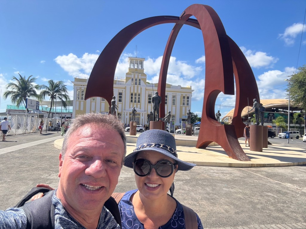 A estrutura artística capturava o movimento fluido e a energia da capoeira, e não pudemos resistir a fazer várias fotos neste local que simboliza a resistência, a cultura e a identidade afro-brasileira tão presente em toda Salvador.