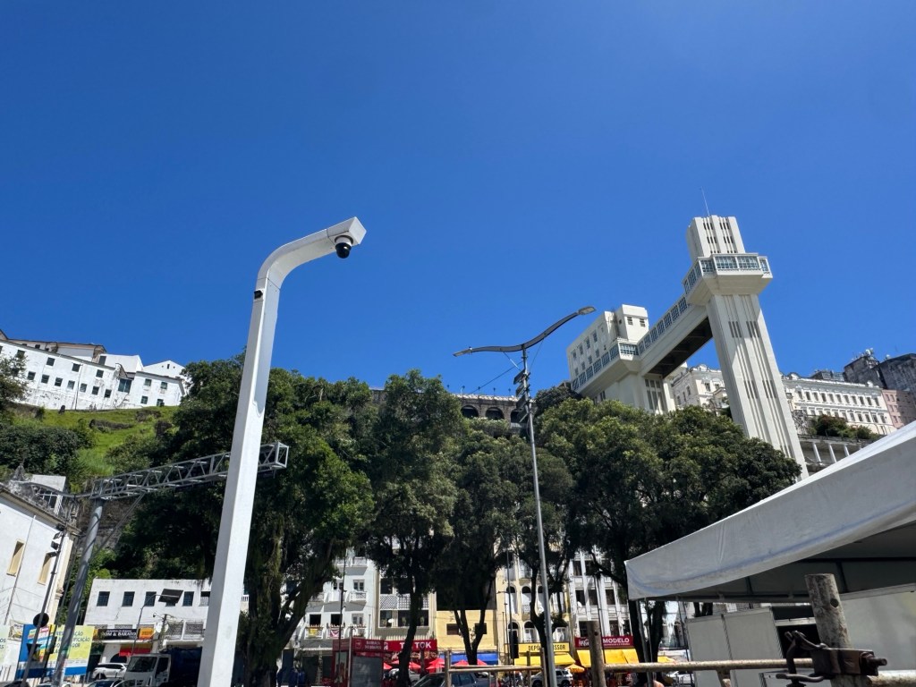 O Elevador Lacerda, bem à nossa frente, foi outro destaque onde realizamos voo de drone para capturar perspectivas únicas.