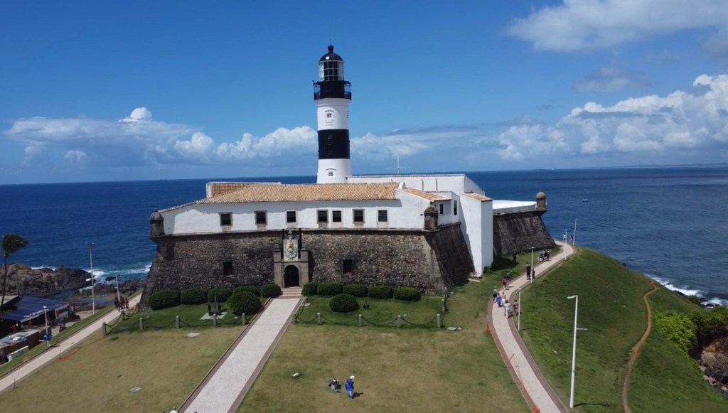 Chegamos ao Farol da Barra, uma das atrações mais emblemáticas de Salvador. Aqui fizemos voos incríveis com o drone, capturando imagens sensacionais deste local histórico.